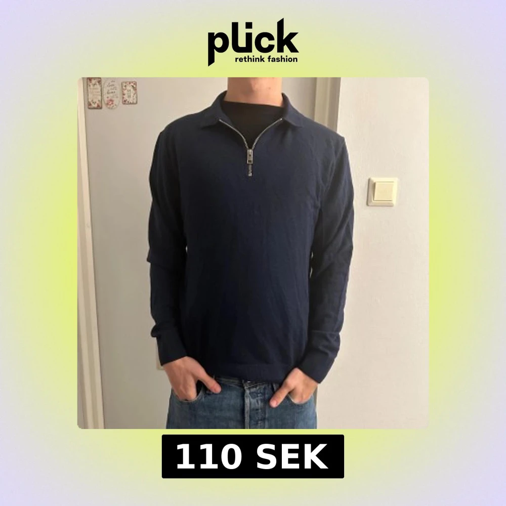 Snygg marinblå stickad tröja i storlek S. Tröjan är i ny skick och är sjukt stilren och passar till det mesta. 180,65kg. Tröjan sitter alltså mer som en M än en S. Må bäst!