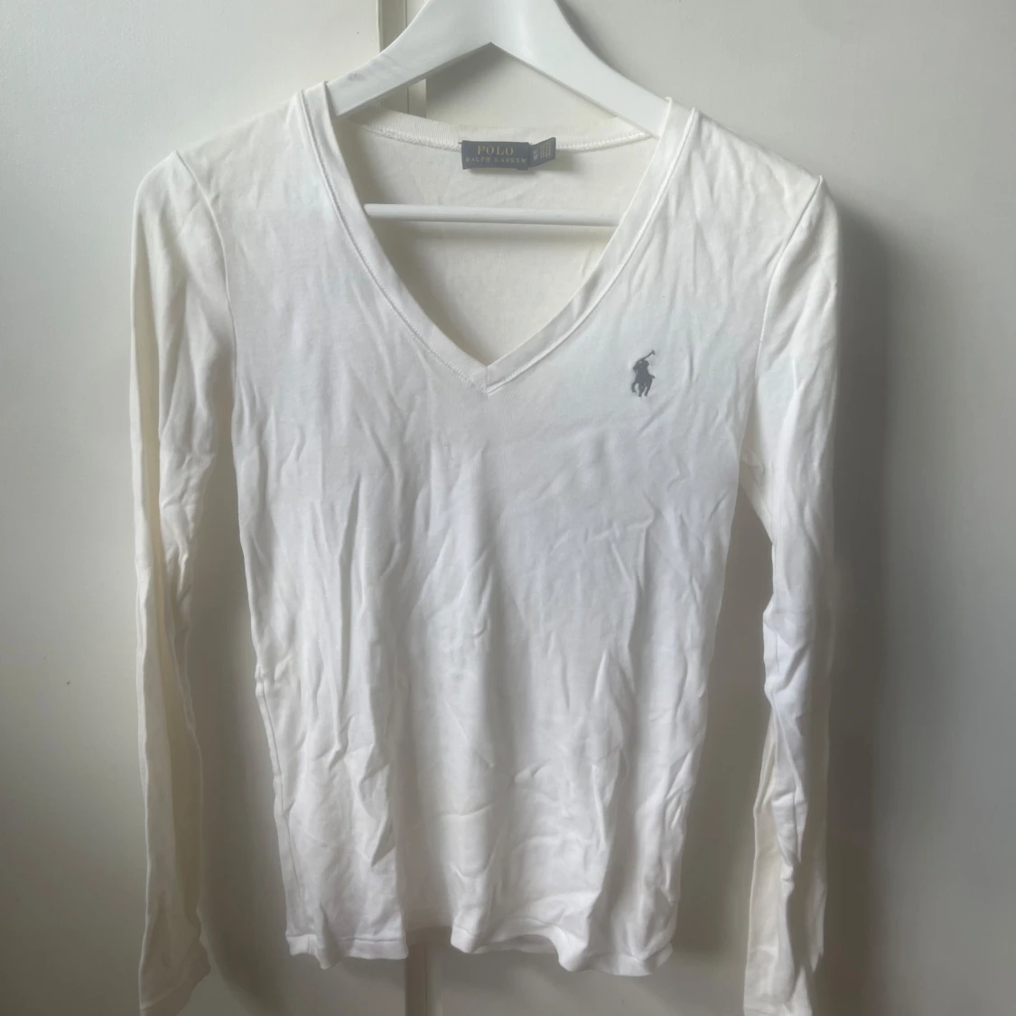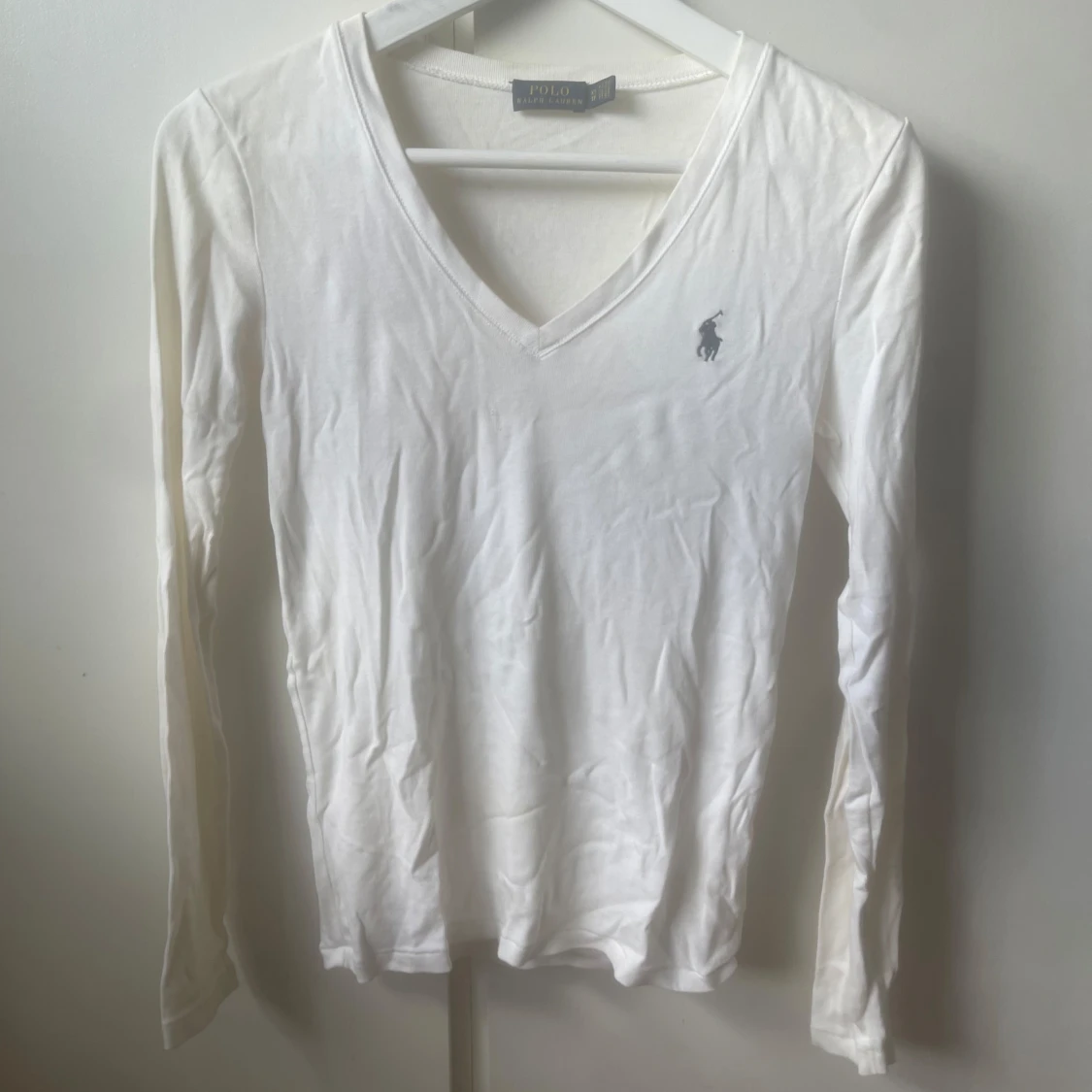 Vit långärmad tröja från Polo Ralph Lauren i mjuk bomull. Tröjan har v-ringning och den klassiska broderade loggan på bröstet. Enkel och stilren som passar till allt!