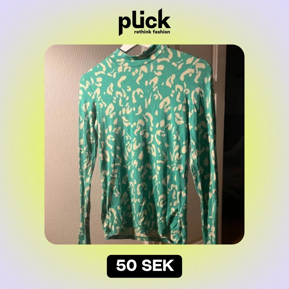 Fin grön långärmad tröja i leopard liknande mönster, tröjan har en liten krage som man ser på bild 1 och 2, köpte i samband med ett klädtema i grönt, aldrig använt efter det💕
