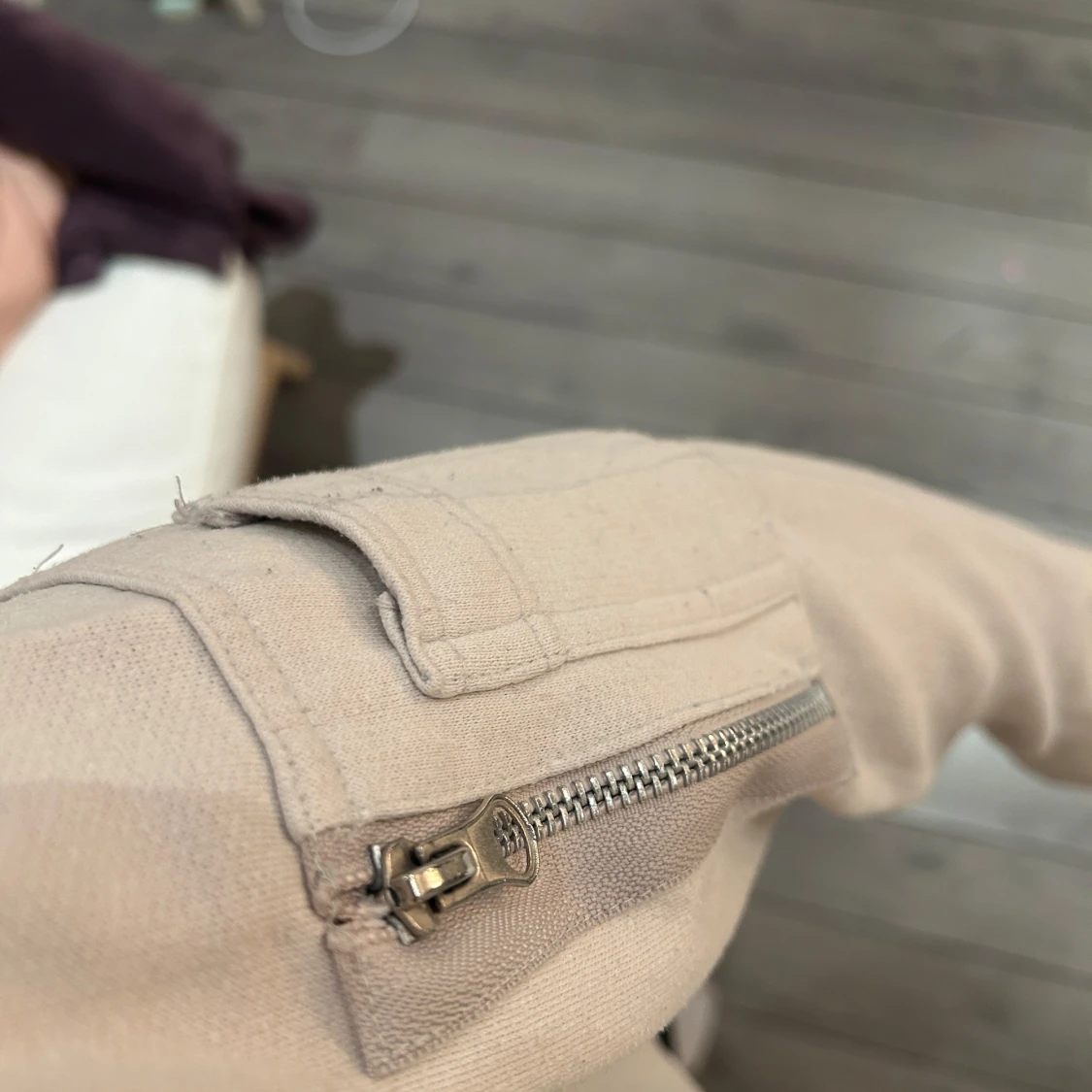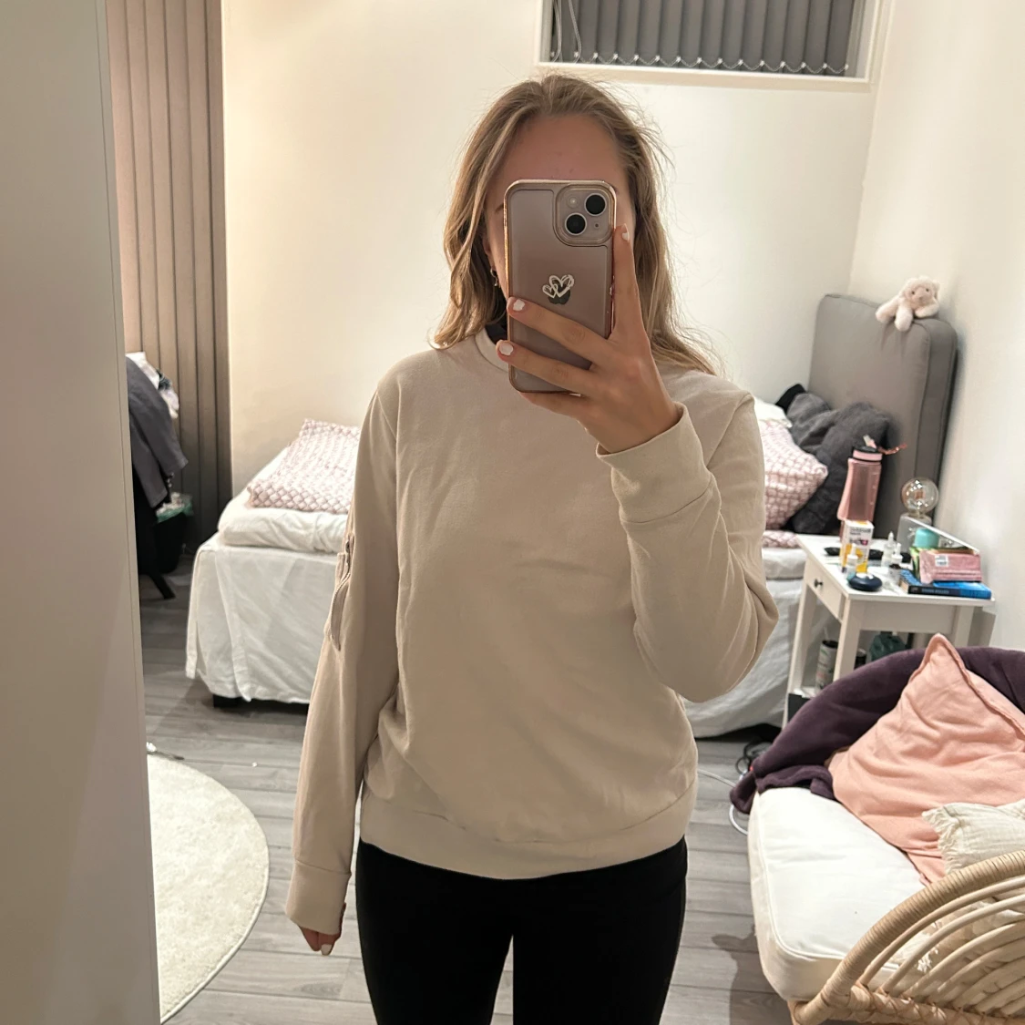 Långärmad crémevit färg tröja med ficka på armen. Fick den av min brorsa så passar alla, men storleken är i herrstorlek💗