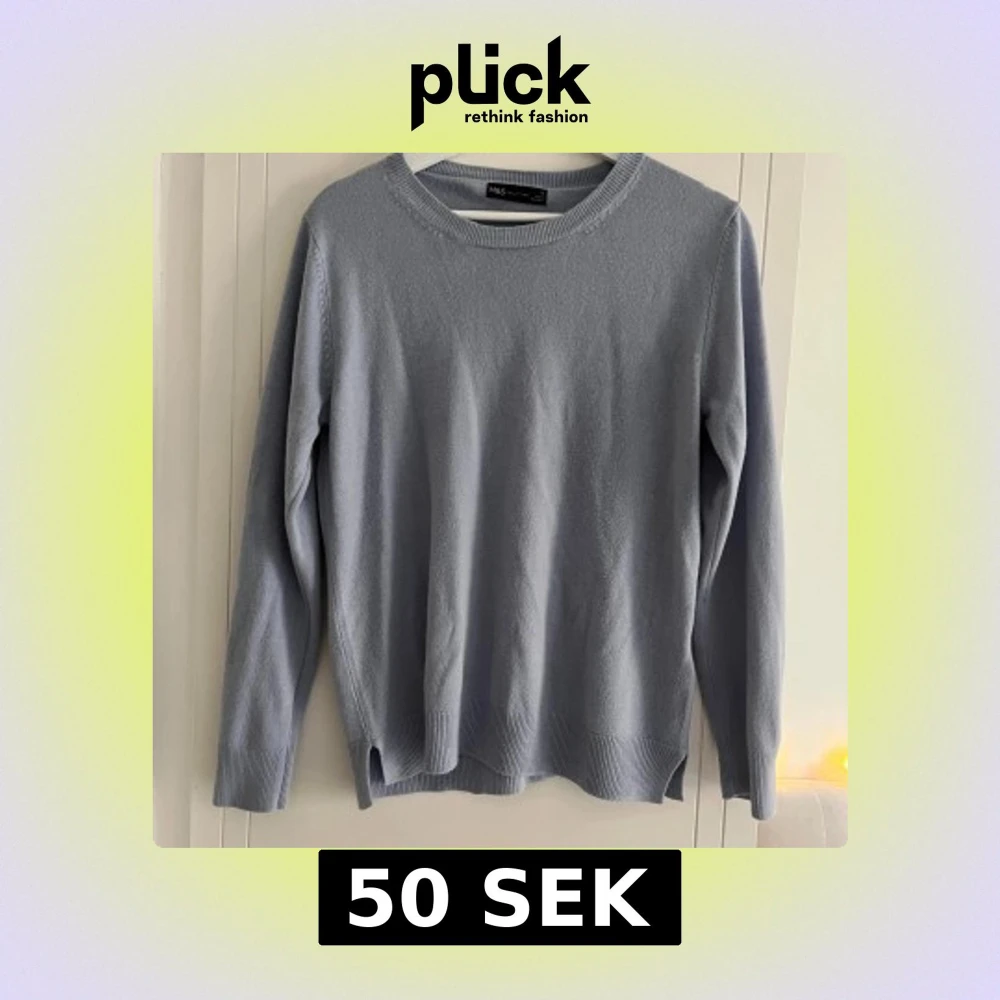 En stilren ljusblå stickad tröja från M&S med rund halsringning och långa ärmar. Tröjan har ribbade muddar, perfekt för lager-på-lager då den är i tunnare material. Enkel och snygg att matcha till jeans eller kjol.