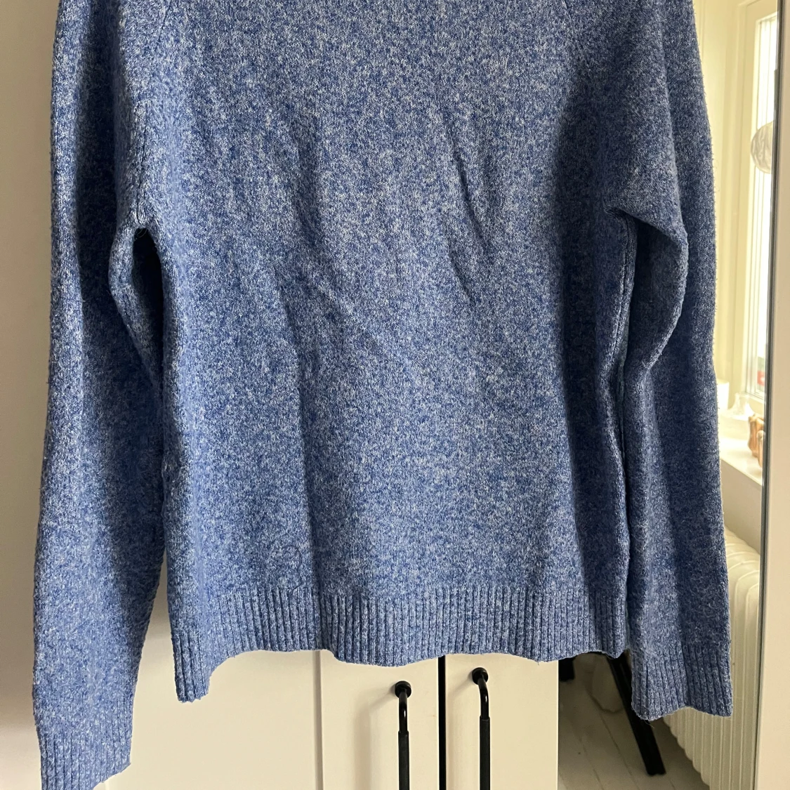 Mysig blå stickad tröja med rund halsringning och långa ärmar från Vero Moda. Tröjan har en melerad struktur och ribbade muddar vid ärmslut och nederkant. Perfekt för kyligare dagar. Skriv för fler bilder💙
