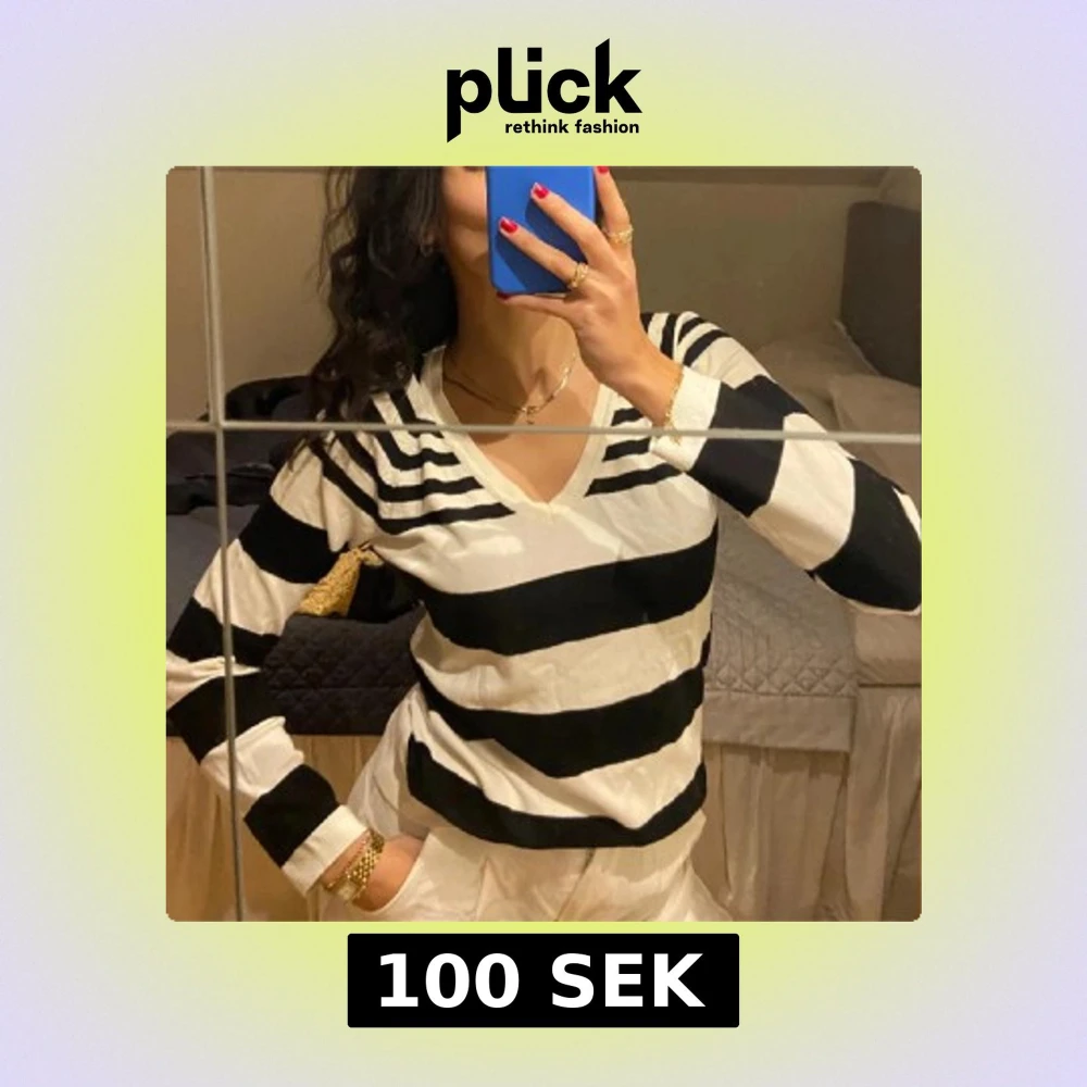 Snygg svartvit randig tröja med v-ringning. Perfekt för en stilren look. Tröjan har långa ärmar och är gjord i ett mjukt material som känns skönt mot huden.