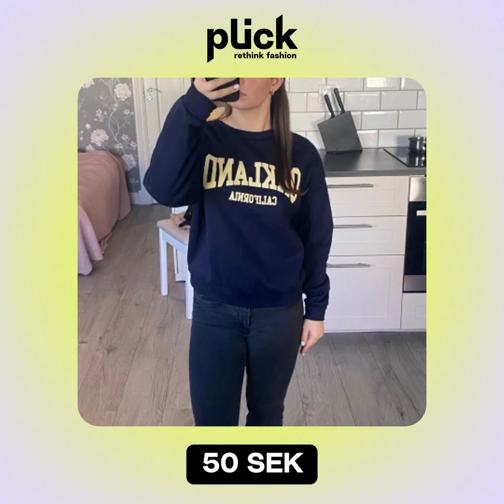 Mörkblå tjock tröja med text, använd få tal gånger!