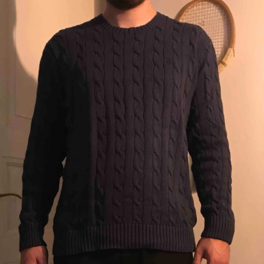 Tröja/sweater - ribbstickad Mörkblå Ralph Lauren Stl:L passar bra på M/48 Gott skick.