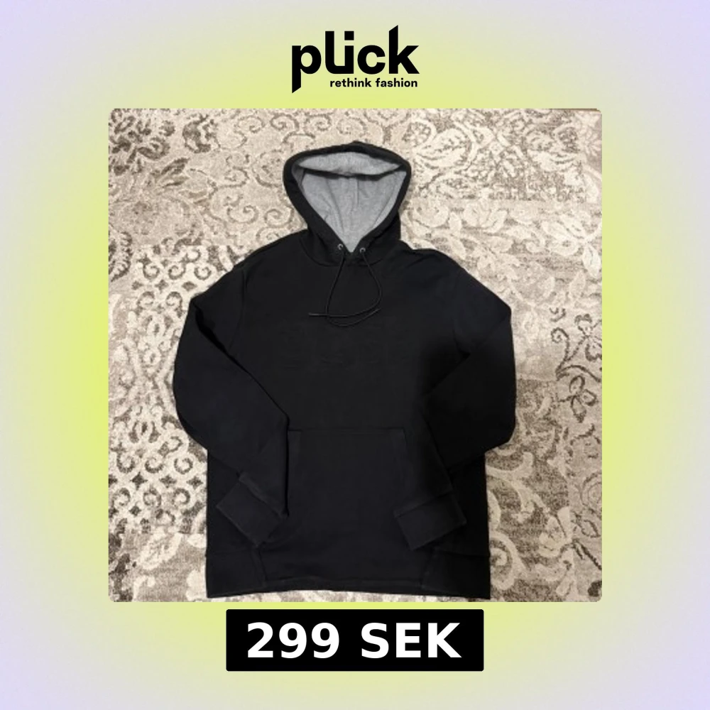 Svart hoodie från BOSS med broderad logotyp framtill. Tröjan har huva med snörning, ribbade muddar och en stor magficka. Insidan av huvan är ljusgrå vilket ger en snygg kontrast. Perfekt för dig som gillar stilrena och bekväma plagg.