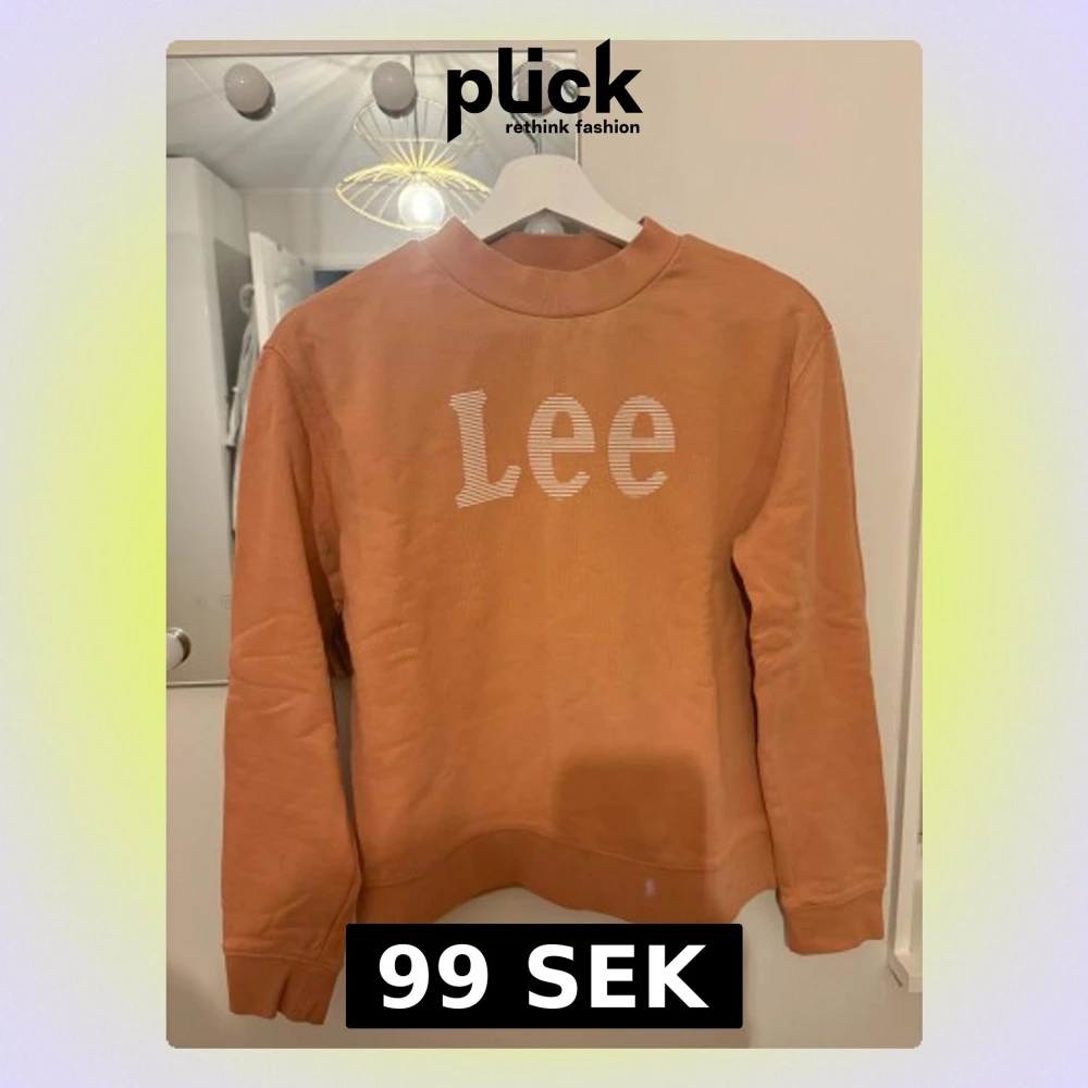 Säljer en snygg orange sweatshirt från Lee i storlek XS. Tröjan har ett stort vitt Lee-tryck på bröstet, ribbade muddar och en klassisk rund hals. Tillverkad i 100% bomull för skön känsla. Perfekt för dig som gillar streetwear och enkel stil.
