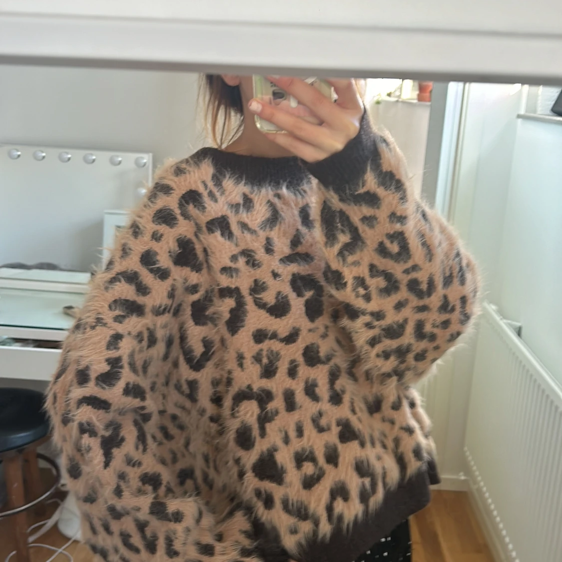 Supermysig och fluffig tröja med leopardmönster. Perfekt för att hålla sig varm och stilren under kyliga dagar. Tröjan har en loose passform och långa ärmar, vilket gör den både bekväm och trendig. Ett måste för höstgarderoben! ❤️NYSKICK!!