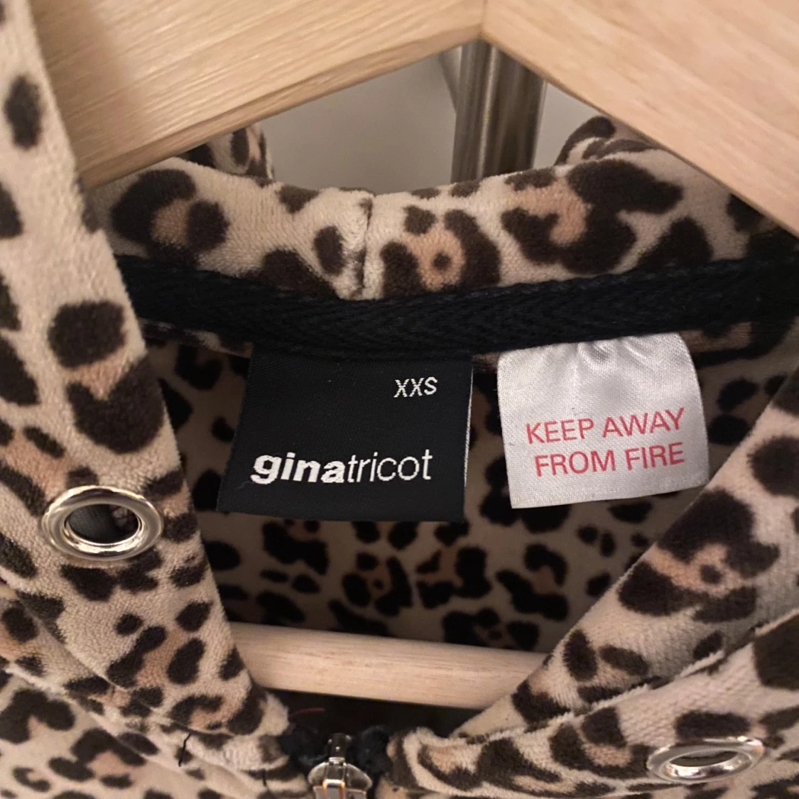 Säljer en cool leopardmönstrad hoodie från Gina Tricot i storlek XXS. Den har en dragkedja framtill och en bekväm huva. Perfekt för att ge din outfit en vild touch! Obs: saknar snören