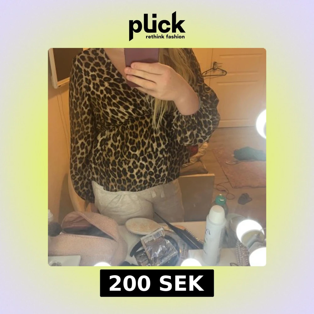 Säljer en snygg leopardmönstrad omlottopp med långa ärmar. Perfekt för att ge en djärv touch till din outfit. Endast använd en gång! Är st L/M men passar M/S