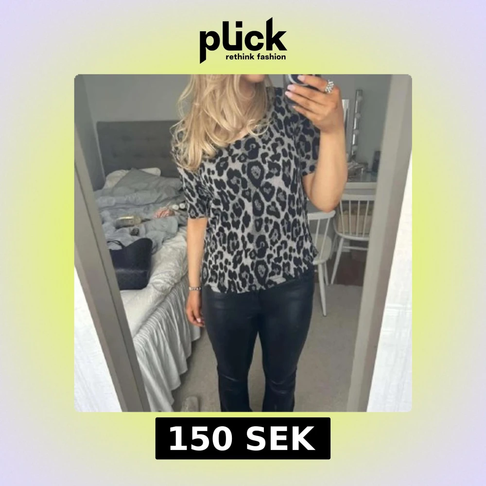 Säljer en snygg t-shirt med leopardmönster i svart och grått från Gina Tricot. Tröjan har korta ärmar och en avslappnad passform, perfekt att styla till både jeans och kjol. Storlek L men sitter som en S