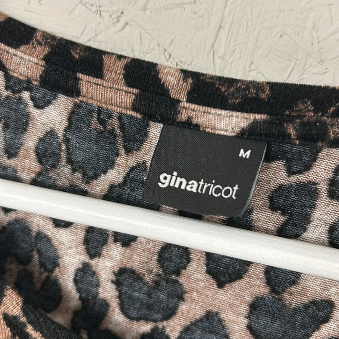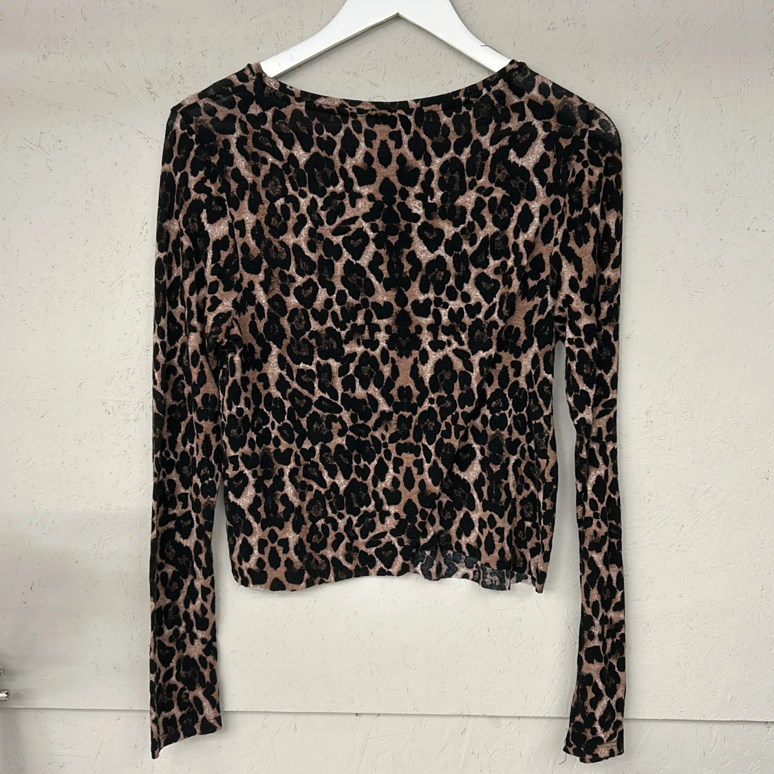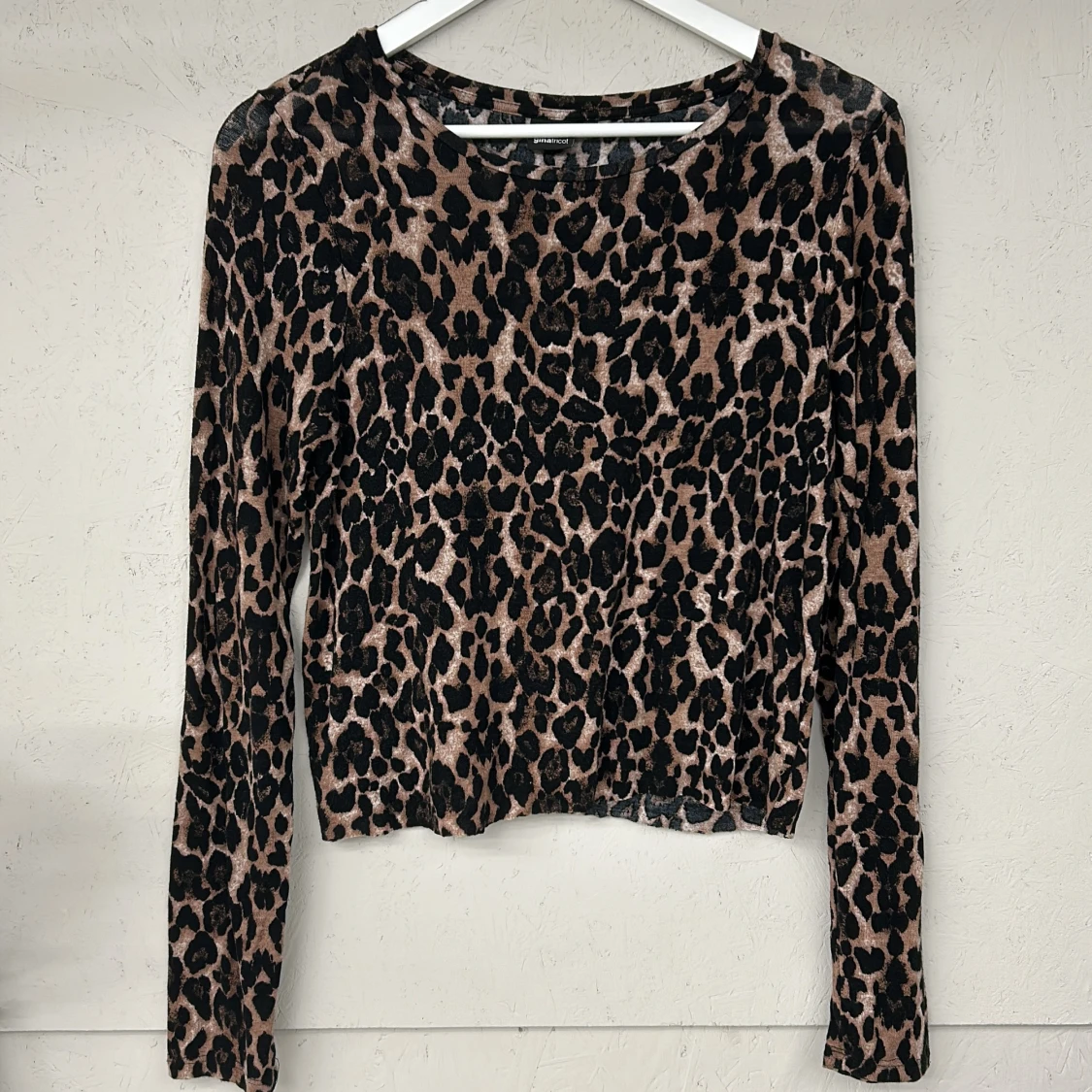 Säljer en snygg leopardmönstrad topp från Gina Tricot. Toppen är långärmad och croppad, perfekt för att ge en trendig look. Den har en bekväm passform och är tillverkad i ett mjukt material.