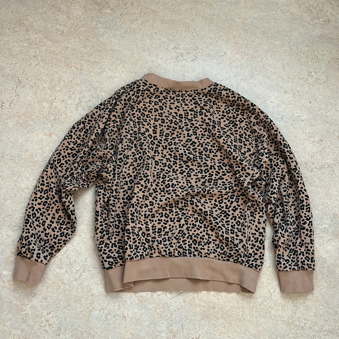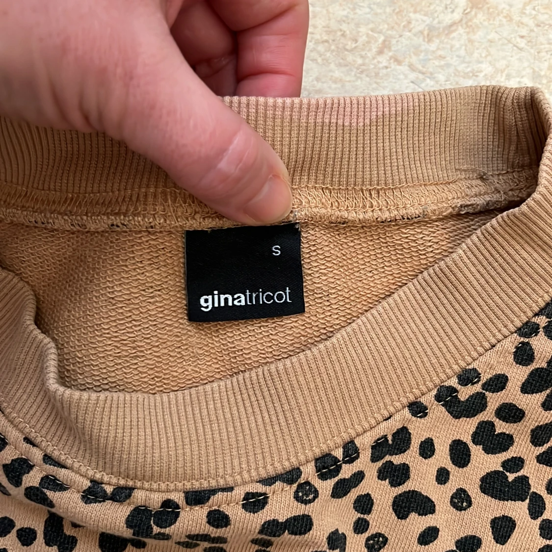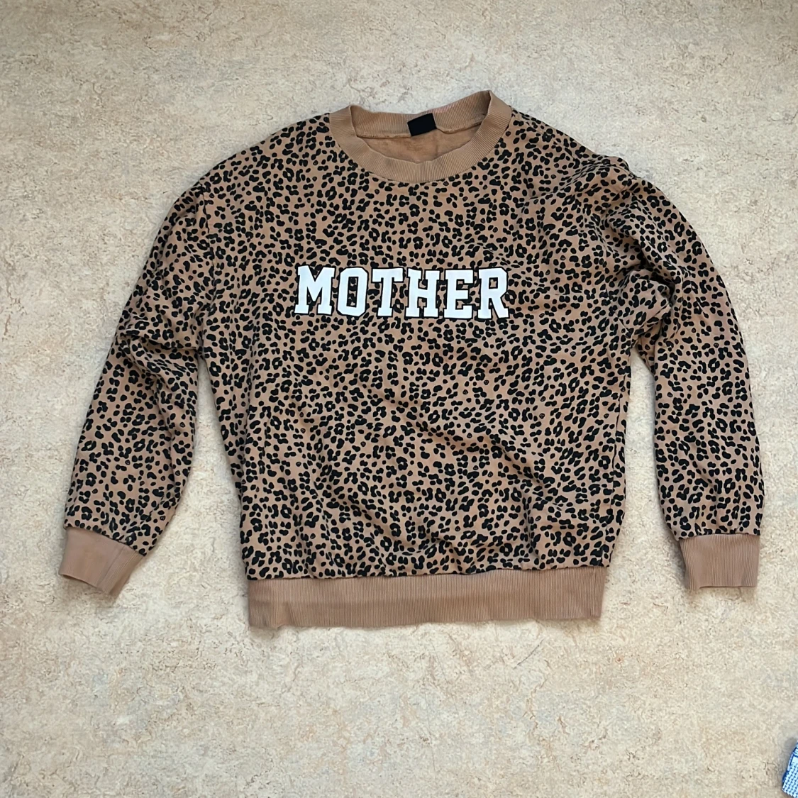 Säljer en cool leopardmönstrad tröja från Gina Tricot med texten 'MOTHER' på framsidan. Tröjan har långa ärmar och ribbade muddar vid ärmslut och nederkant. Perfekt för en avslappnad stil 🐆Liten missfärgning på kragen på insidan och lite på baksidan på muddkragen, se bild.