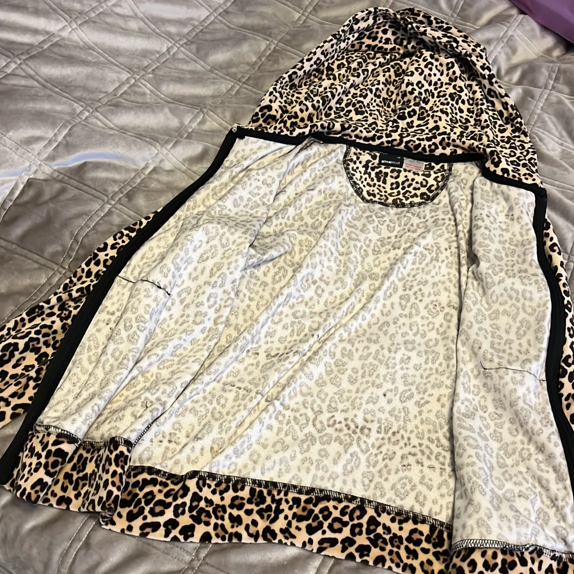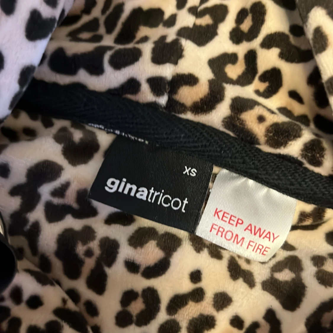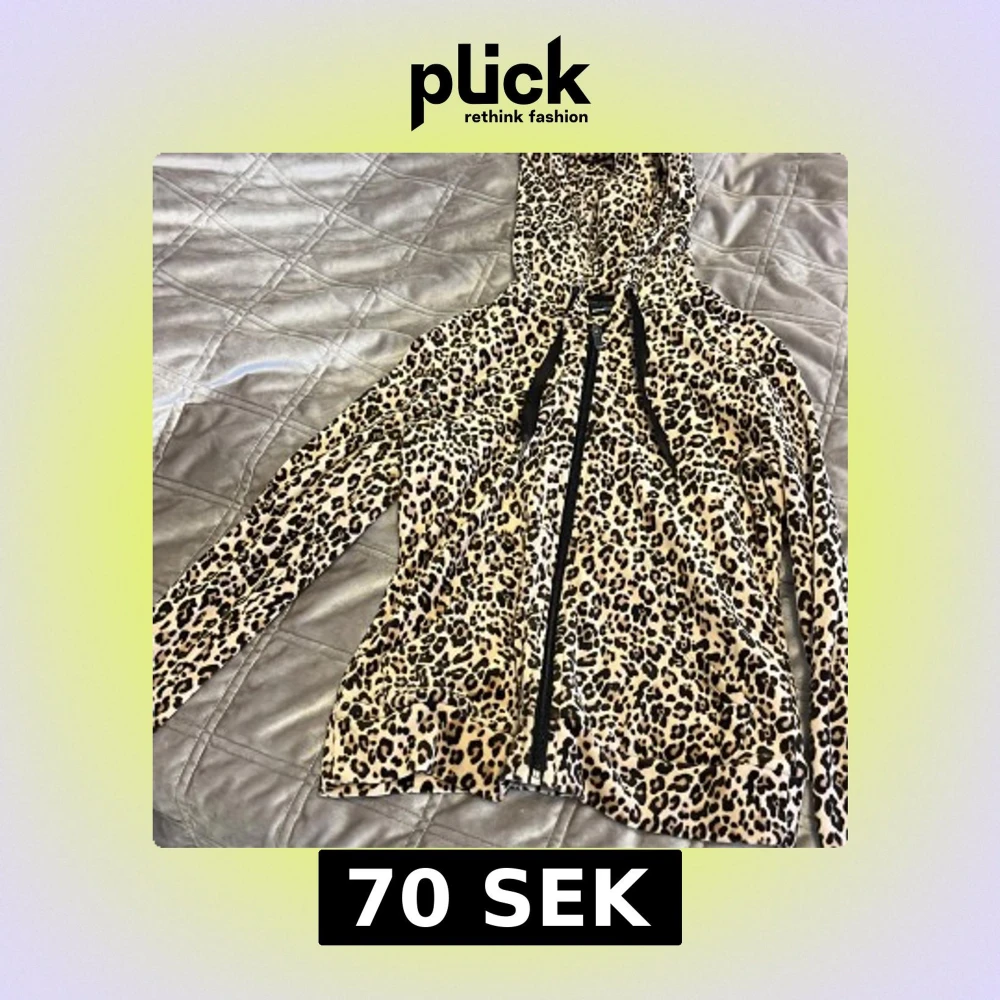 Säljer en leopardmönstrad tröja från Gina Tricot i storlek XS. Tröjan har en dragkedja framtill och en luva. Perfekt för att ge din outfit en djärv touch 🐆