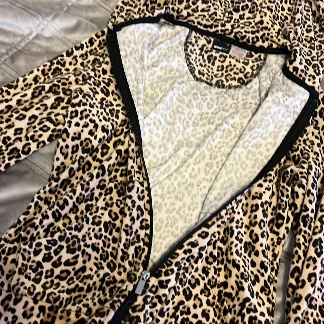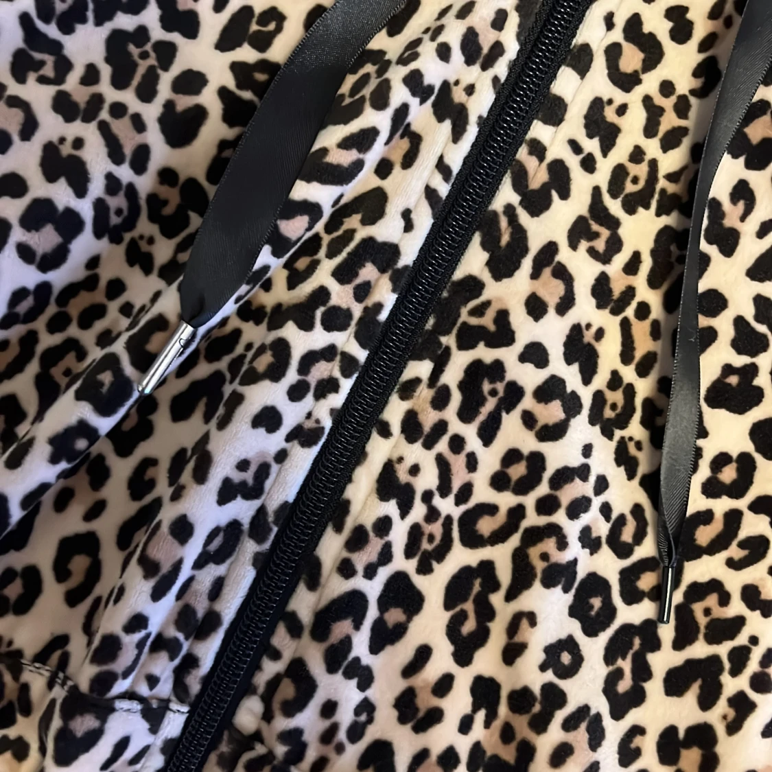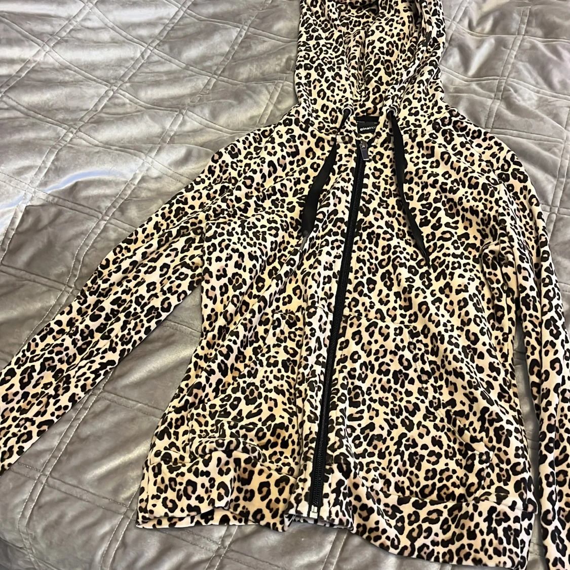 Säljer en leopardmönstrad tröja från Gina Tricot i storlek XS. Tröjan har en dragkedja framtill och en luva. Perfekt för att ge din outfit en djärv touch 🐆