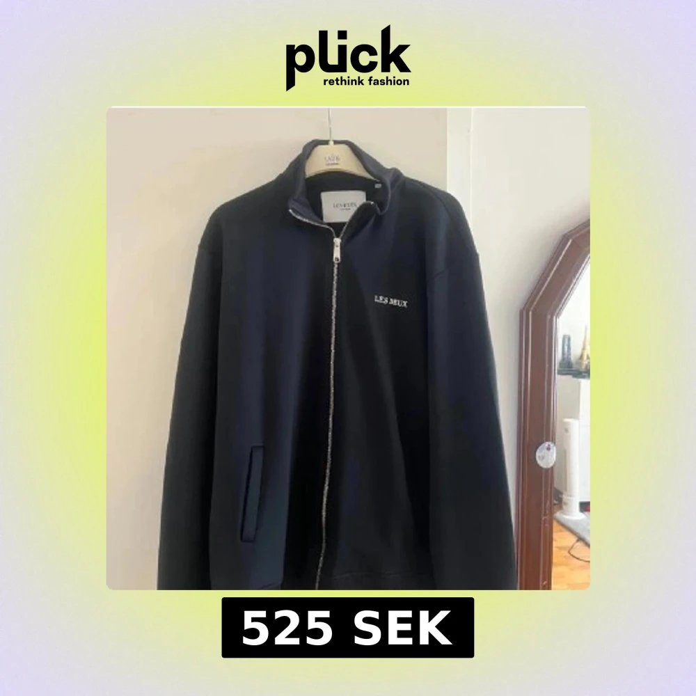 Mörk blå zip tröja från Les Deux med stilren design och broderad logga på bröstet. Jackan har hög krage, hel dragkedja framtill och ribbade muddar. Perfekt för dig som gillar en clean och sportig look.