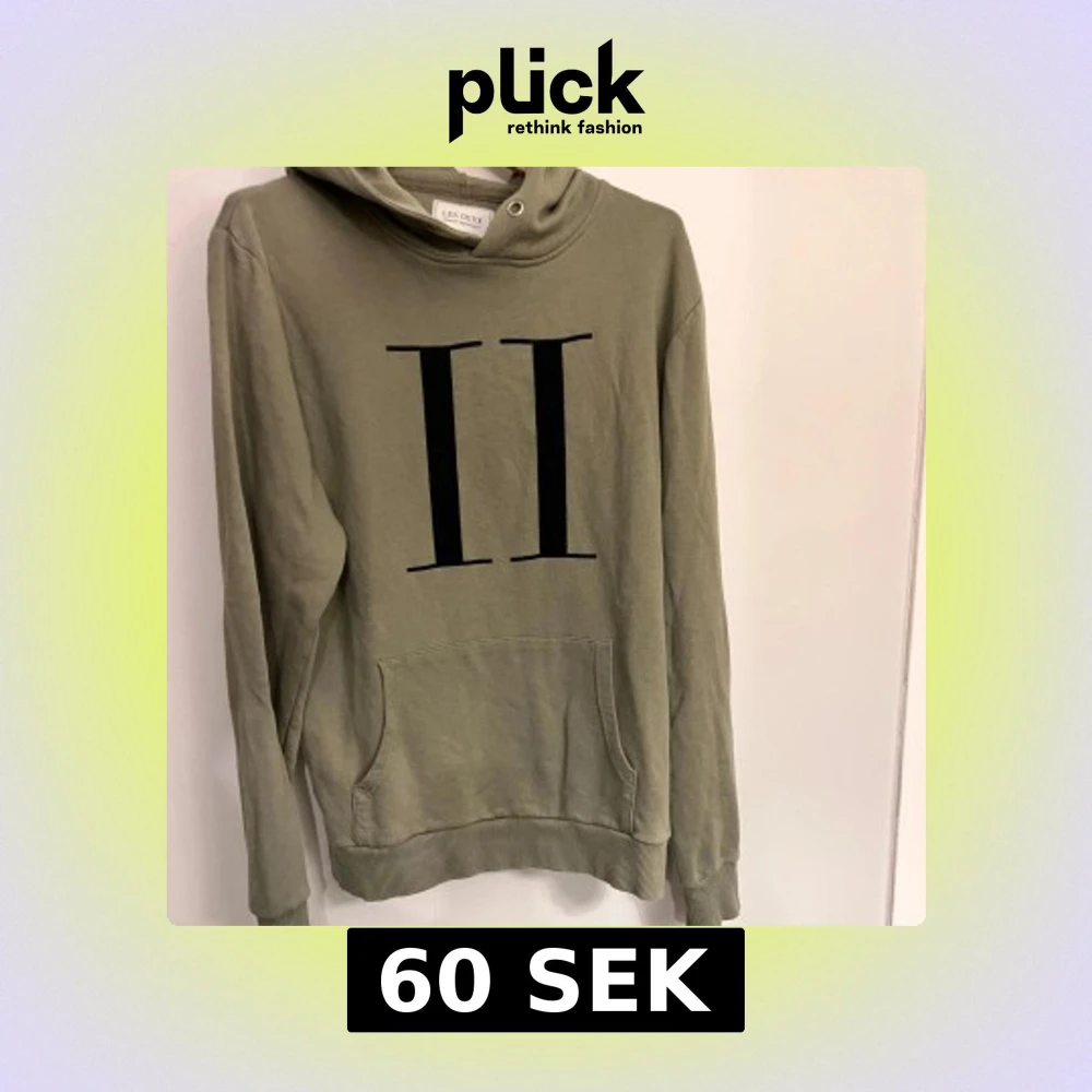 Olivgrön hoodie från Les Deux med stor svart II-logga på bröstet. Tröjan har huva, känguruficka och ribbade muddar vid ärmslut och nederkant. Perfekt för en chill och avslappnad stil.