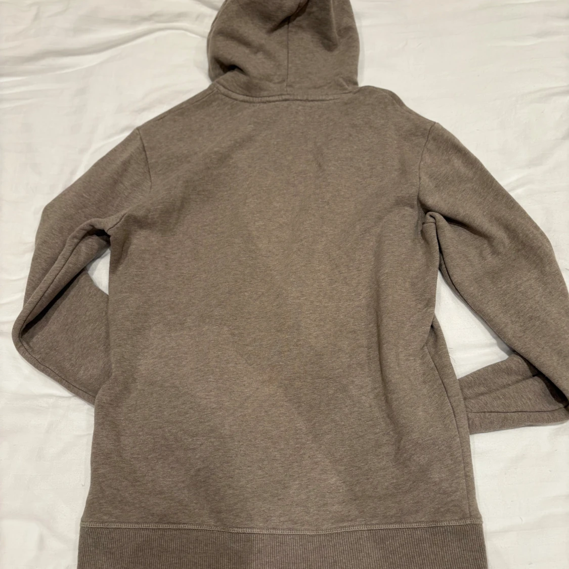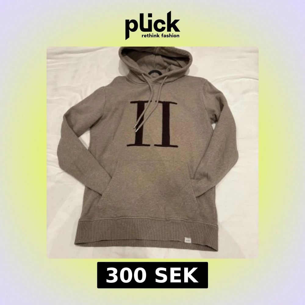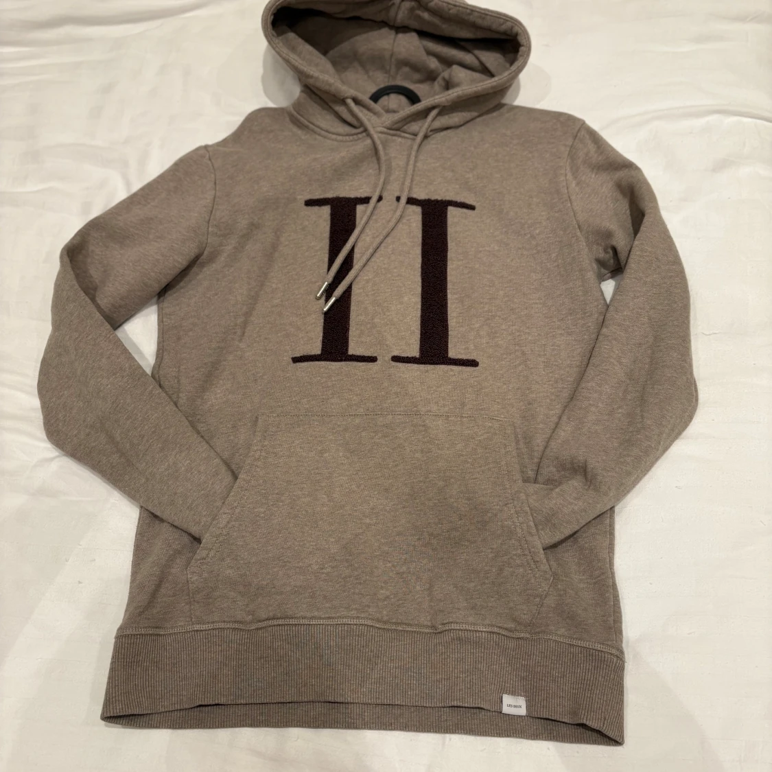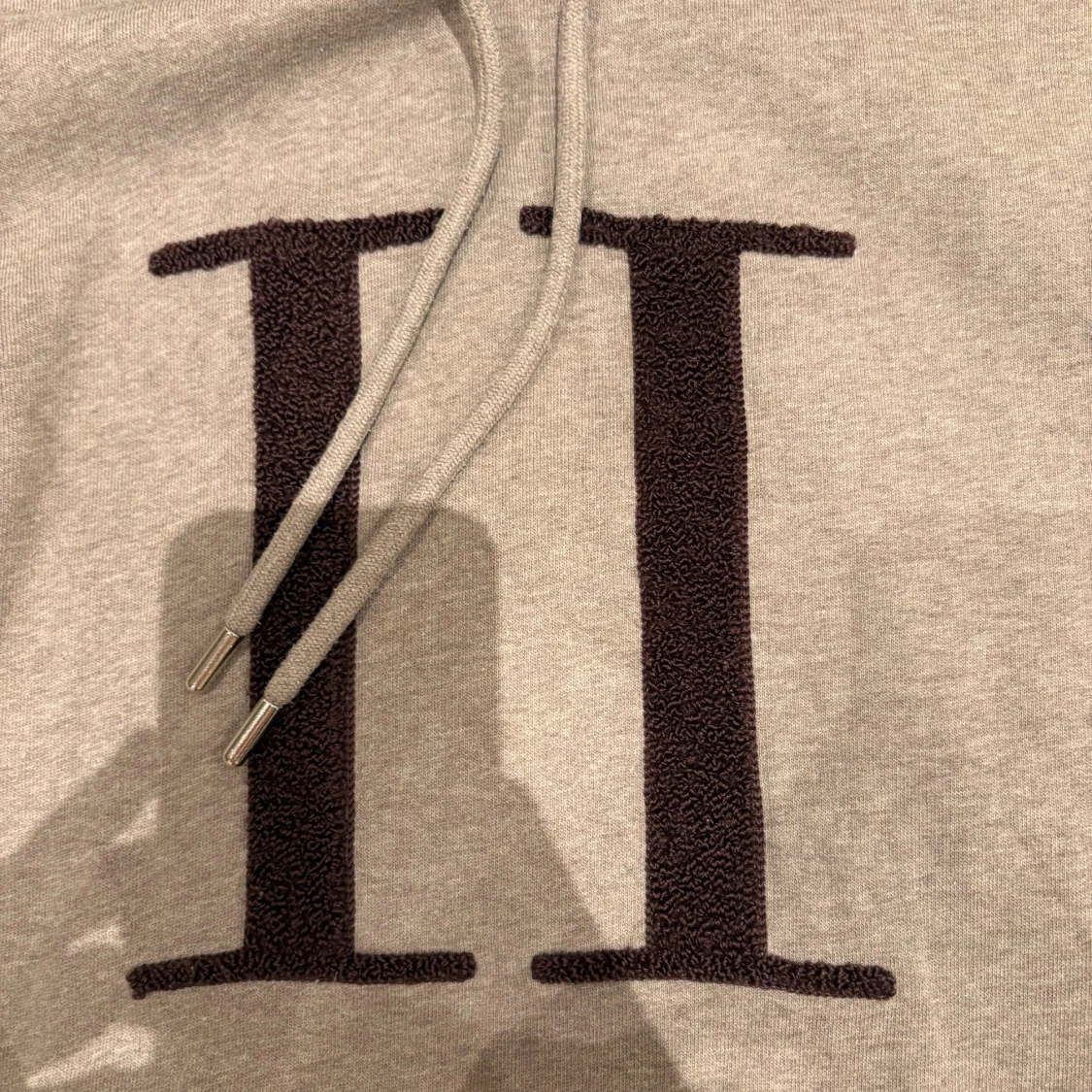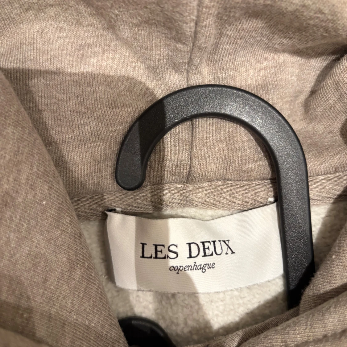 Snygg beige hoodie från Les Deux med stor mörkbrun II-logga på bröstet. Tröjan har huva med snörning och en klassisk känguruficka framtill. Tillverkad i mjuk bomullsmix, perfekt för chill dagar eller när du vill ha en clean look.