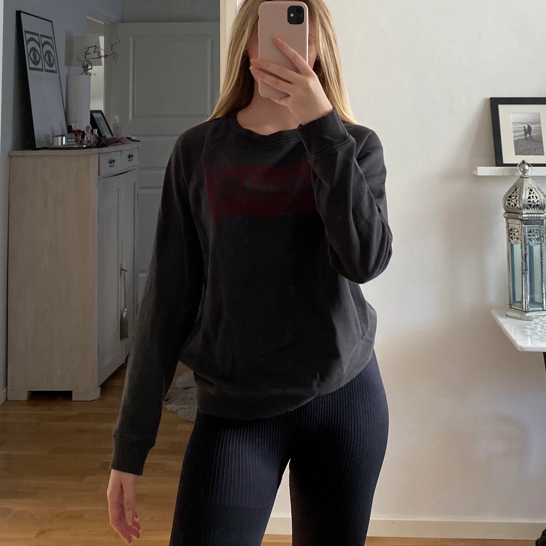 Vintage-inspirerad tröja från Levi’s som är mörkgrå med slitningar runt om tröjan. Köparen står för frakten!🤍