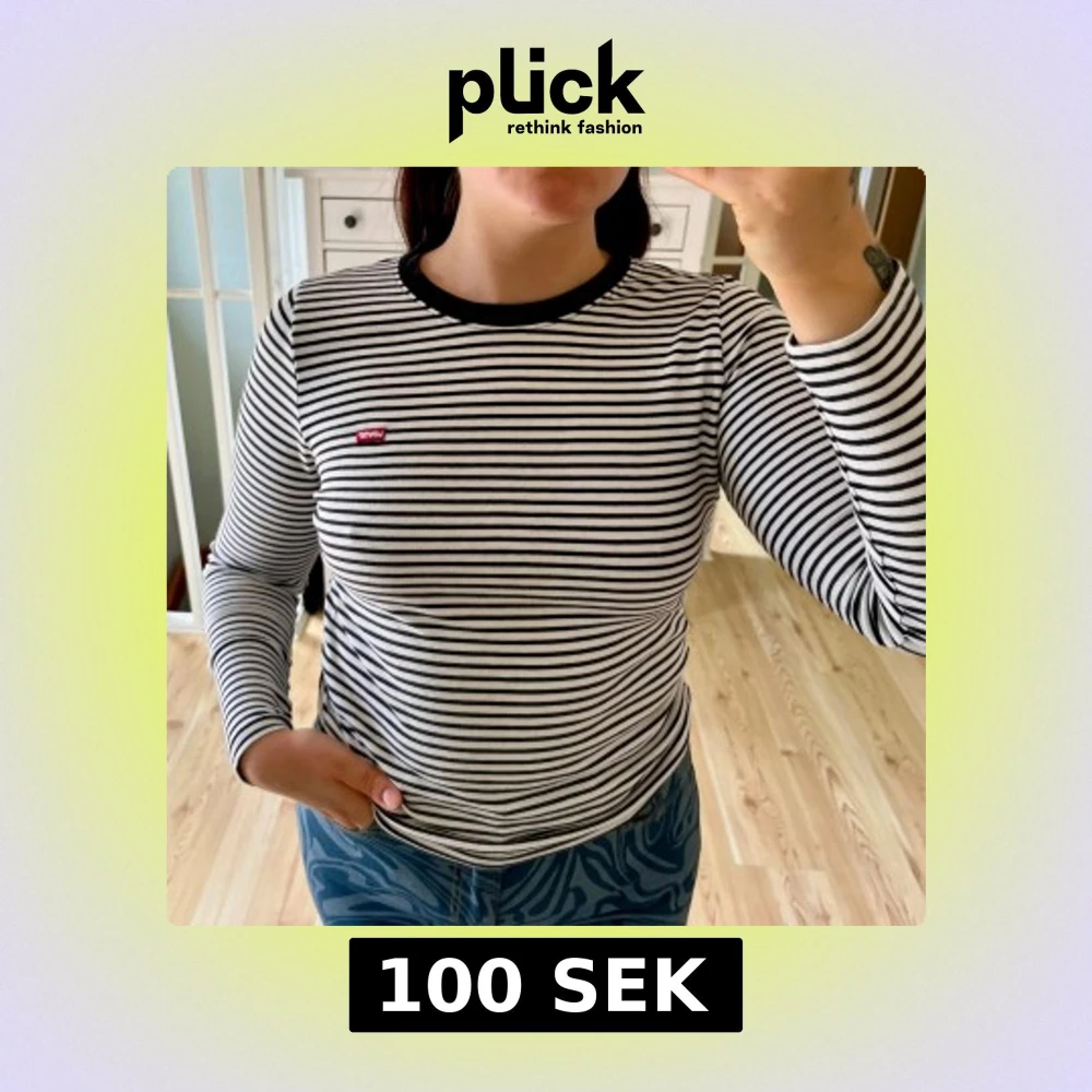 Snygg långärmad tröja från Levi's i svartvitt randigt mönster. Tröjan har rund hals med svart kant och Levi's-logga på bröstet. Tillverkad i mjuk bomull! Använd väldigt lite!☀️Normal storlek!🌸