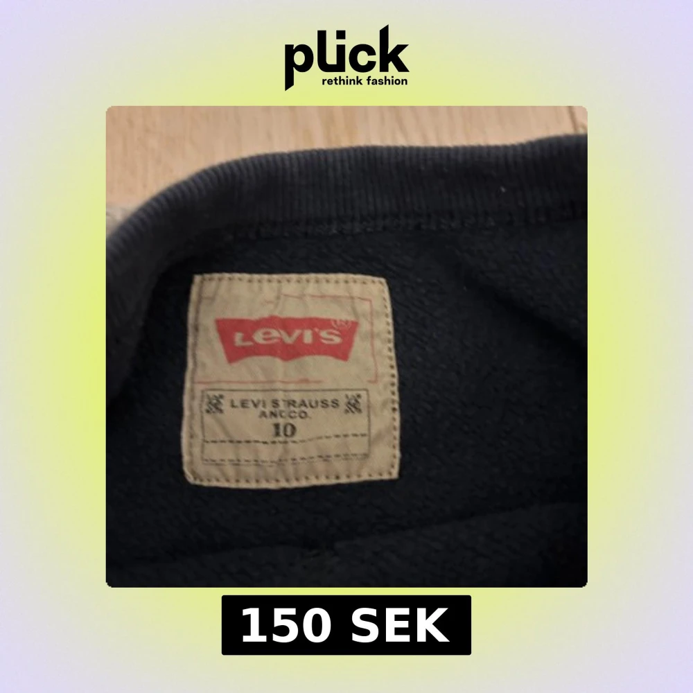 Säljer en mörkblå tröja från Levi's med det klassiska röda logotyptrycket på framsidan. Tröjan har långa ärmar och en rund halsringning. Perfekt för en avslappnad stil. Str 10 år