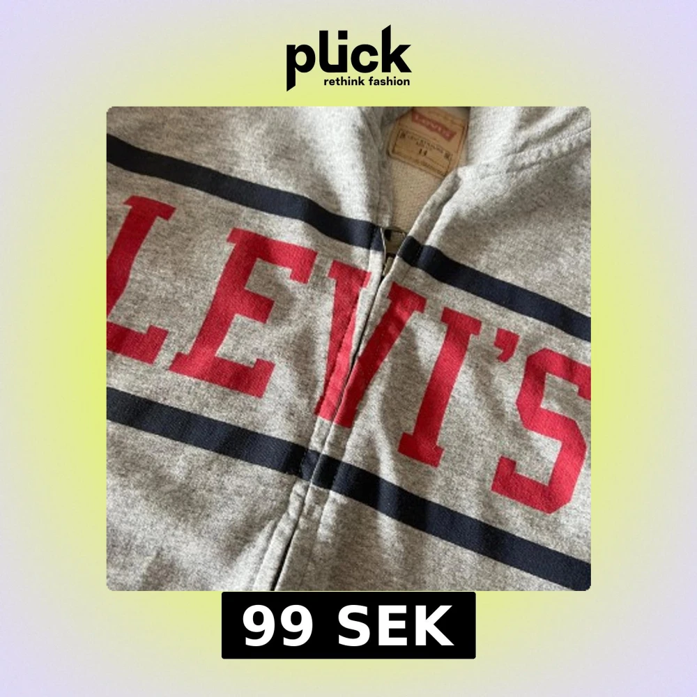 Säljer en grå hoodie från Levi's med röd och svart logga på bröstet. Tröjan har dragkedja och en klassisk huva. Perfekt för en avslappnad stil.