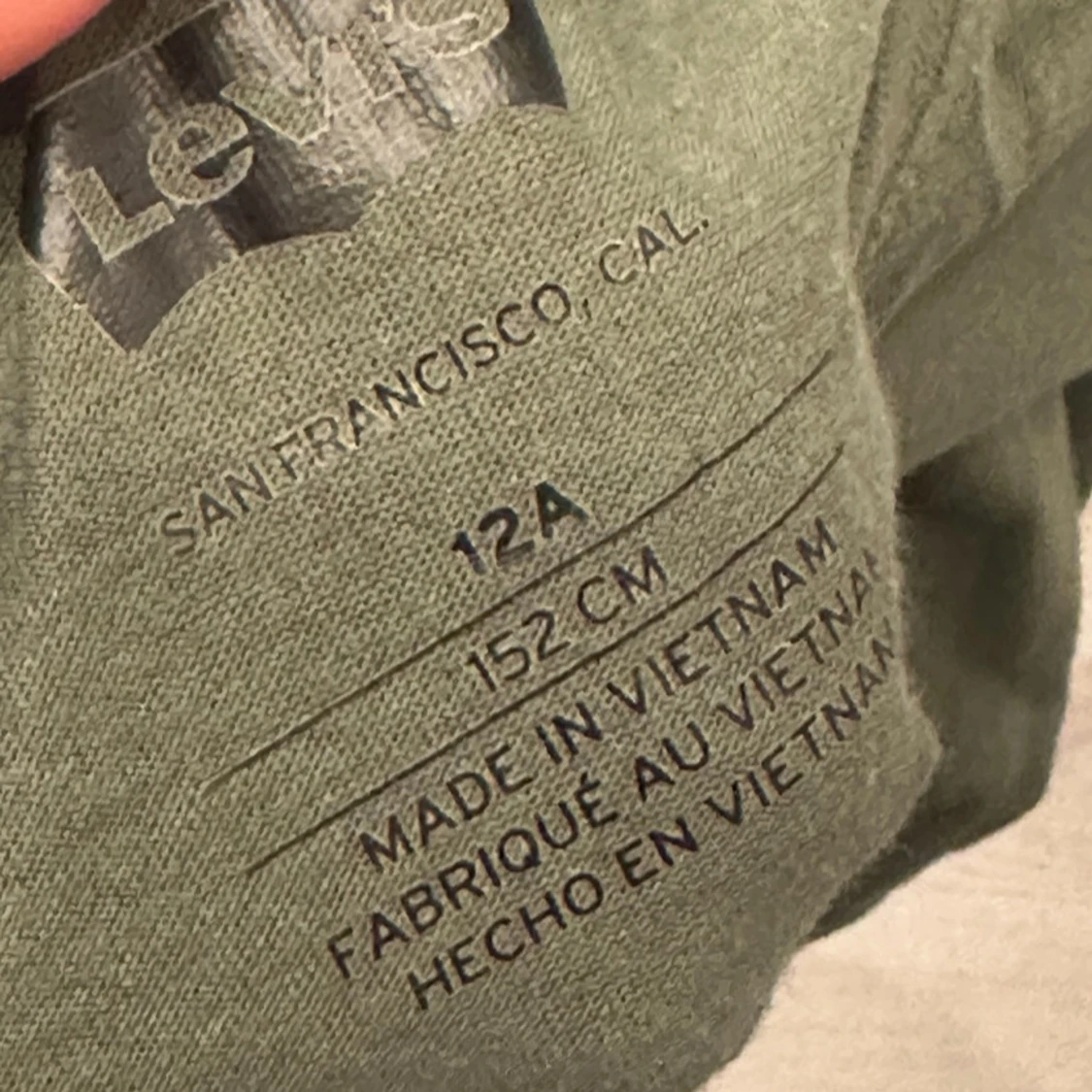 Säljer en grön långärmad tröja från Levi's med tryckt logotyp på bröstet. Perfekt för en avslappnad stil. Tröjan är tillverkad i mjukt material och har en rund halsringning.