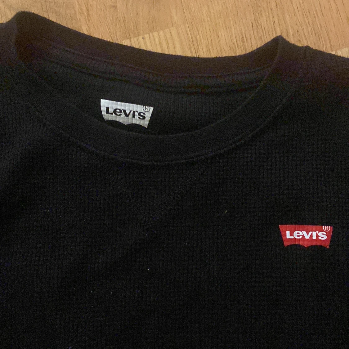 Säljer en svart långärmad tröja från Levi's i mycket bra skick. Tröjan är ribbad och har en liten röd Levi's-logga på bröstet. Perfekt för höst och vinter, och passar till både vardag och fest. Skön och stilren design!