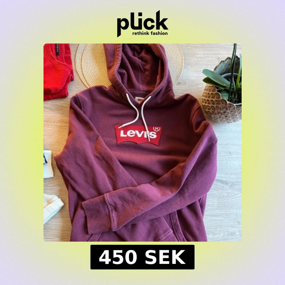 Säljer en vinröd hoodie från Levi's med klassisk logga framtill. Tröjan har huva med snörning och en stor magficka. Perfekt för dig som gillar en avslappnad och cool stil.