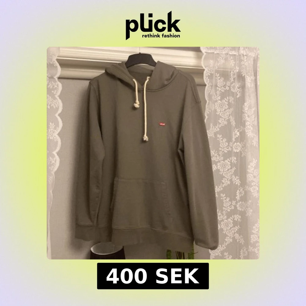Säljer en stilren grön hoodie från Levi's med en klassisk känguruficka och justerbar huva med vita snören. Perfekt för en avslappnad look. Levi's logga i rött på bröstet ger en snygg detalj.