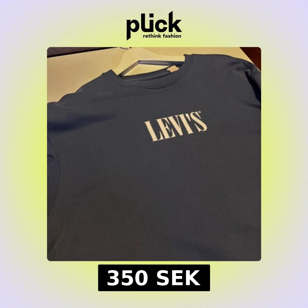 Säljer en stilren blå sweatshirt från Levi's med klassisk vit logga på bröstet. Tröjan har rund halsringning och långa ärmar. Passar L/M.