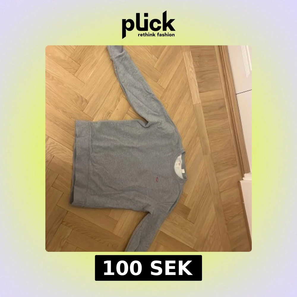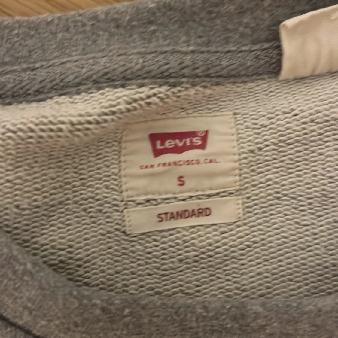 Säljer en stilren grå sweatshirt från Levi's i mjuk bomull. Tröjan har rund halsringning, lång ärm och en liten röd Levi's-logga på bröstet. Perfekt för en avslappnad look och enkel att matcha med jeans eller joggers.