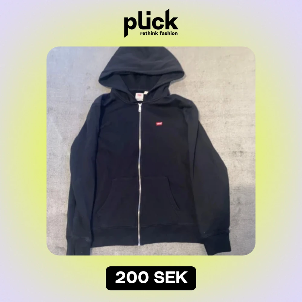 Säljer en klassisk svart hoodie från Levi's i storlek S. Den har en dragkedja framtill och en liten röd Levi's-logga på bröstet. Perfekt för en avslappnad stil och passar till det mesta. Superbekväm och stilren!