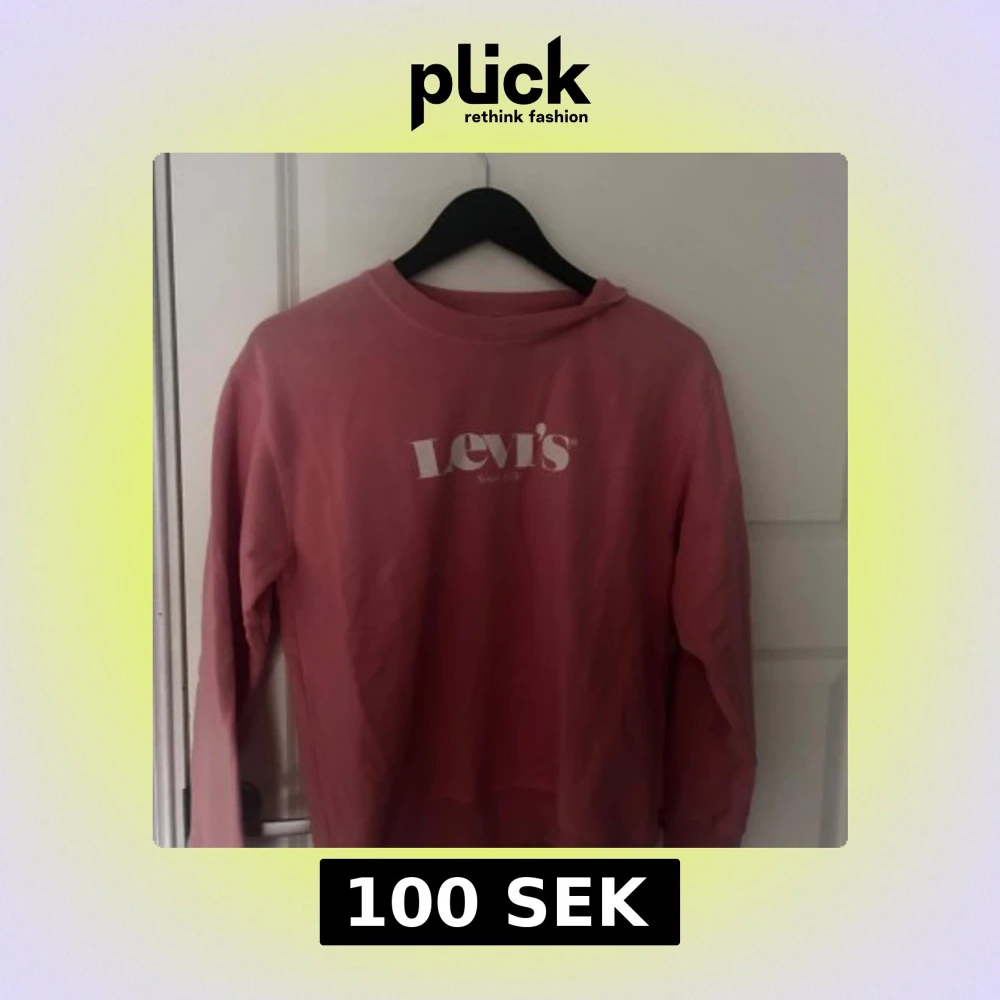 Säljer en rosa långärmad tröja från Levi's med deras klassiska logga tryckt på framsidan. Perfekt för en avslappnad stil och enkel att matcha med jeans eller kjol.