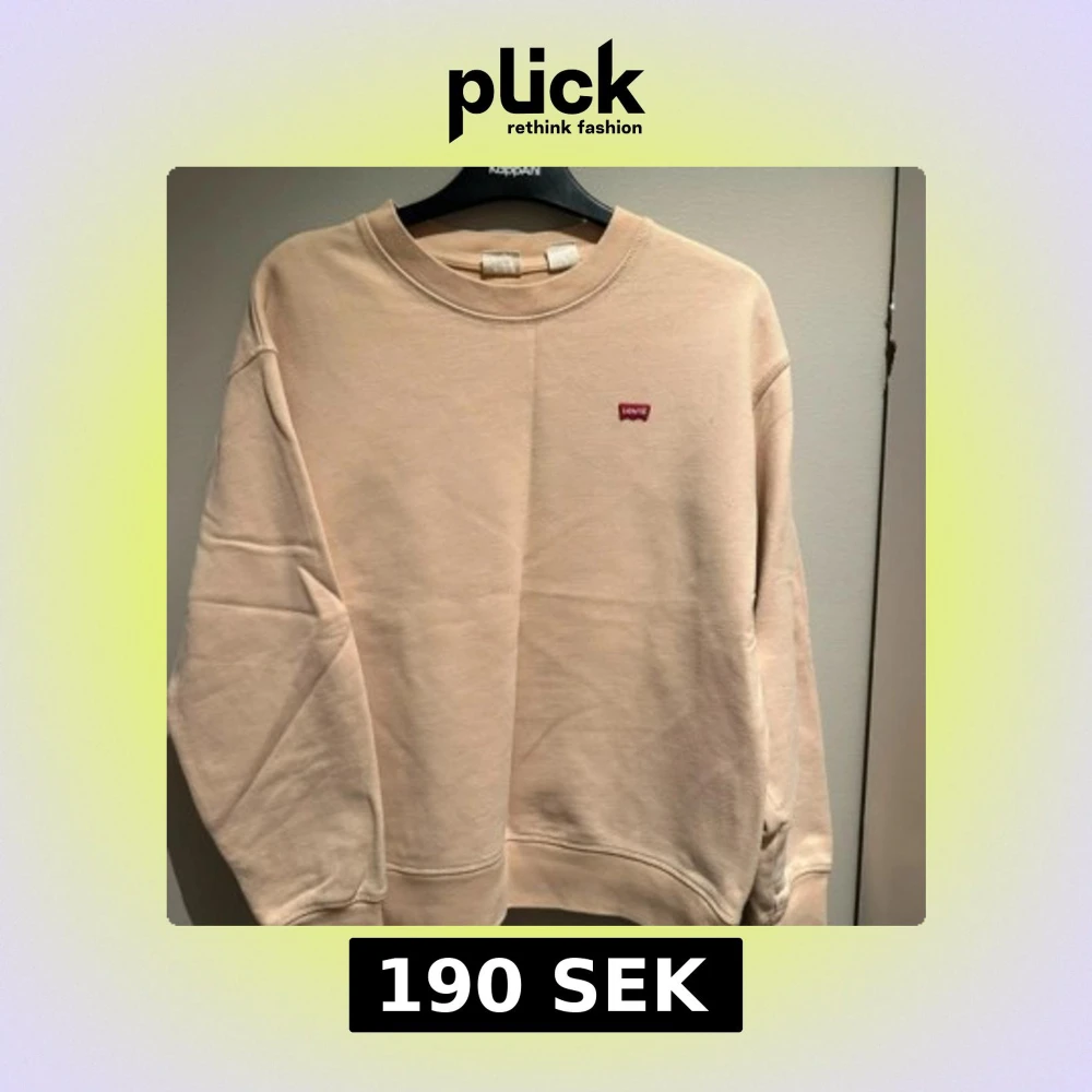 Säljer en beige sweatshirt från Levi's i storlek XS. Tröjan har en klassisk rund halsringning, långa ärmar och en liten röd Levi's-logga på bröstet. Tillverkad i mjuk bomull