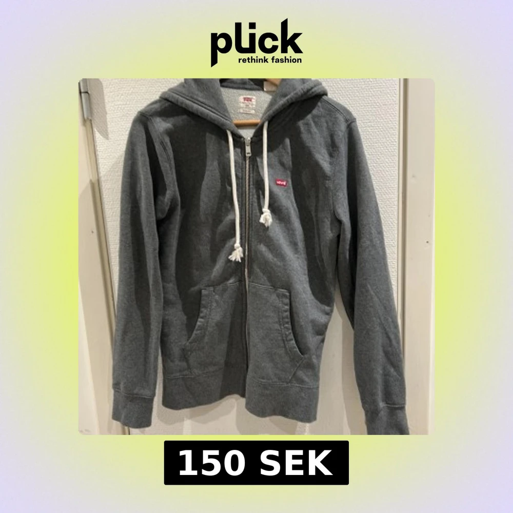 Mysig grå hoodie från Levi's i bomull med vit snörning i huvan och dragkedja framtill. Storlek XS men sitter som S