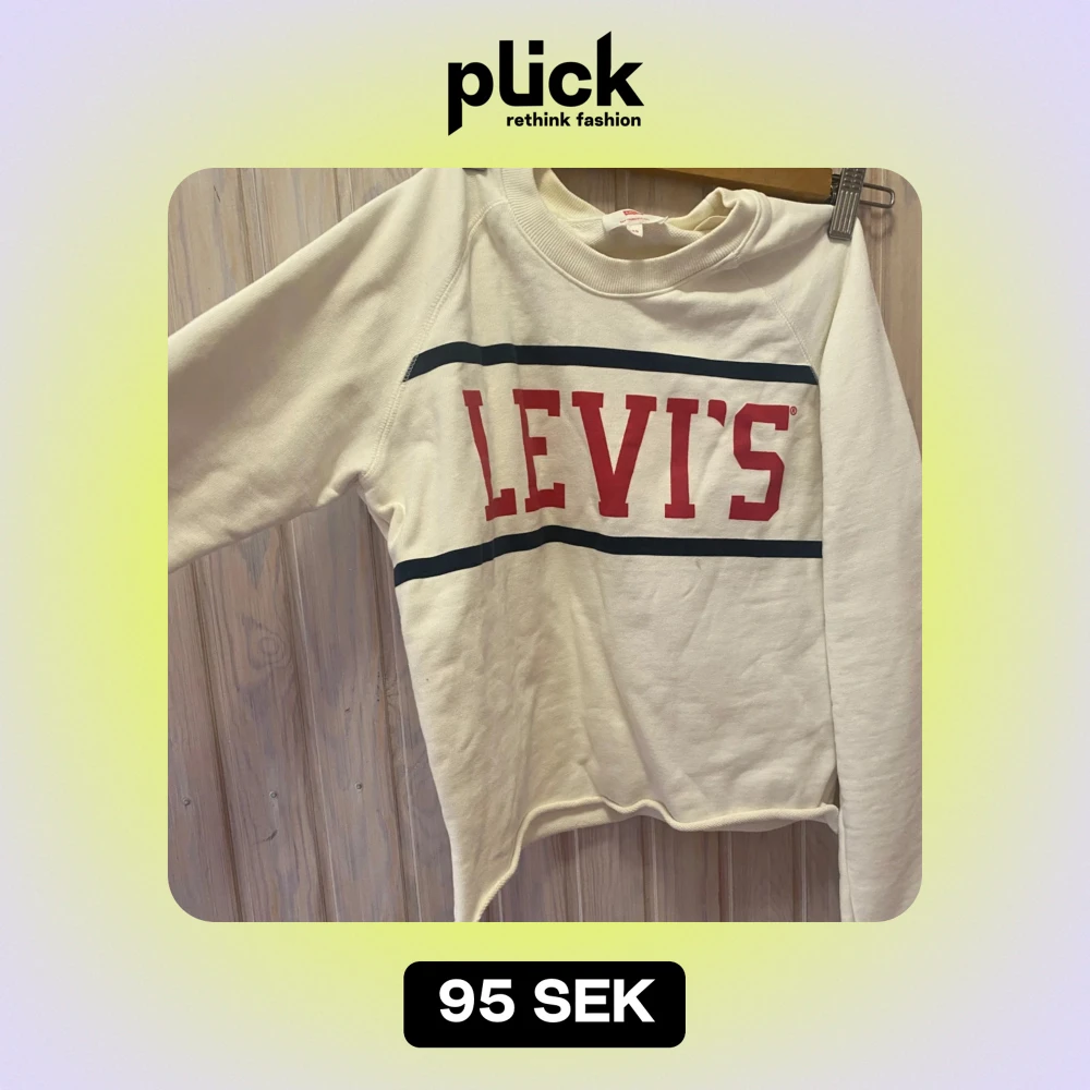 Säljer en snygg vit sweatshirt från Levi's i storlek XS. Tröjan har ett klassiskt rött Levi's-tryck på bröstet och blå ränder. Perfekt för en casual look och passar till alla årstider. Den är i bra skick och superbekväm!