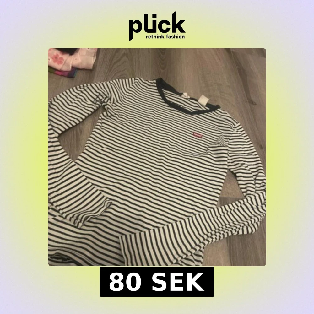 Säljer en svartvit randig långärmad tröja från Levi's i storlek XS. Tröjan har rund hals med svart kant och klassiskt rött Levi's-märke på bröstet. Perfekt för dig som gillar enkel och stilren streetstil.