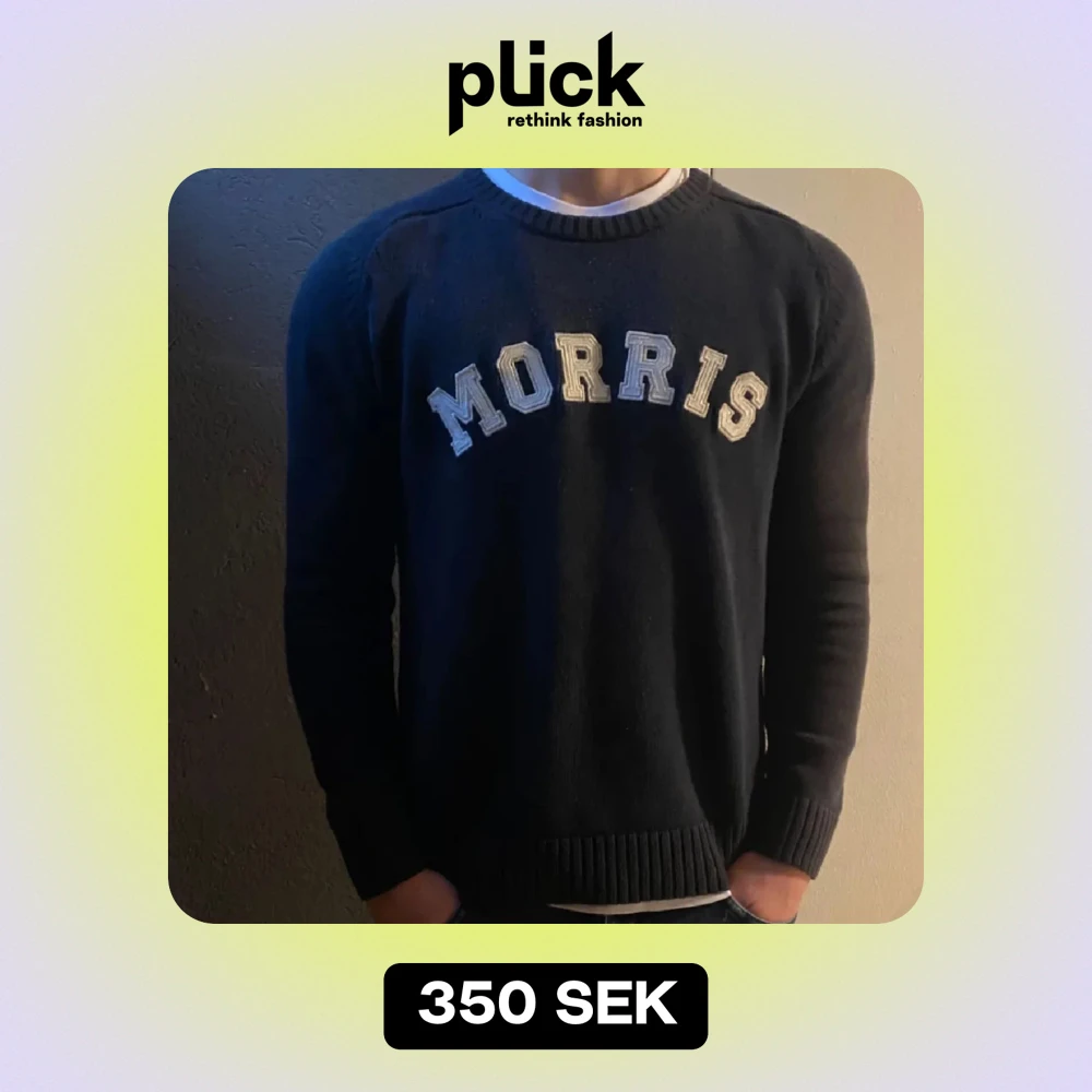 Säljer en snygg svart/navy blå tröja från Morris i 100% bomull. Den har långa ärmar och ett stilrent tryck med 'MORRIS' på bröstet. Perfekt för höst och vinter, och passar både till vardags och lite finare tillfällen. Tröjan är i bra skick och redo för en ny ägare!