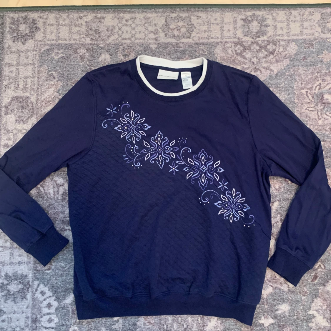 En fin lila sweater aktig tröja från alfred dunner köpt på beyond retro. Fint mönster på och paljetter. Storlek M men passar nog flera storlekar! 🌙✨pris kan diskuteras!
