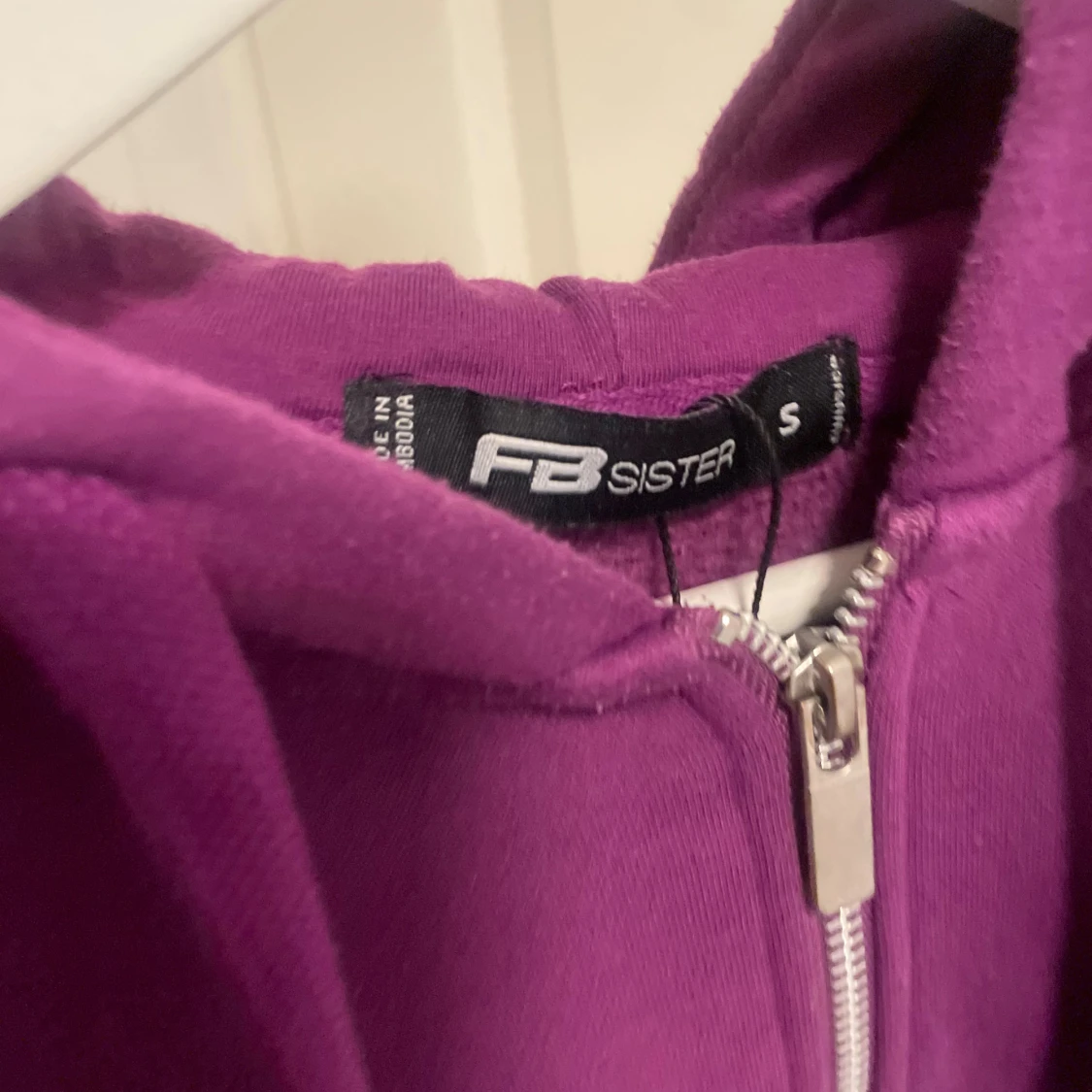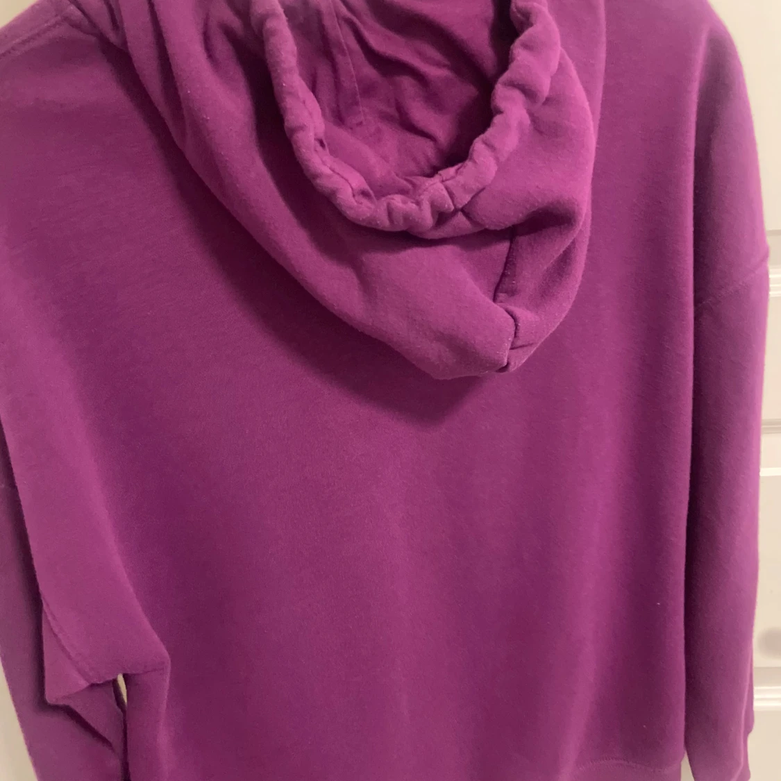 Lila hoodie från new yorker med huva, snörning och hel dragkedja framtill. Tröjan har fickor på magen och en liten vit text på bröstet. Perfekt för dig som gillar en chill och färgstark stil.