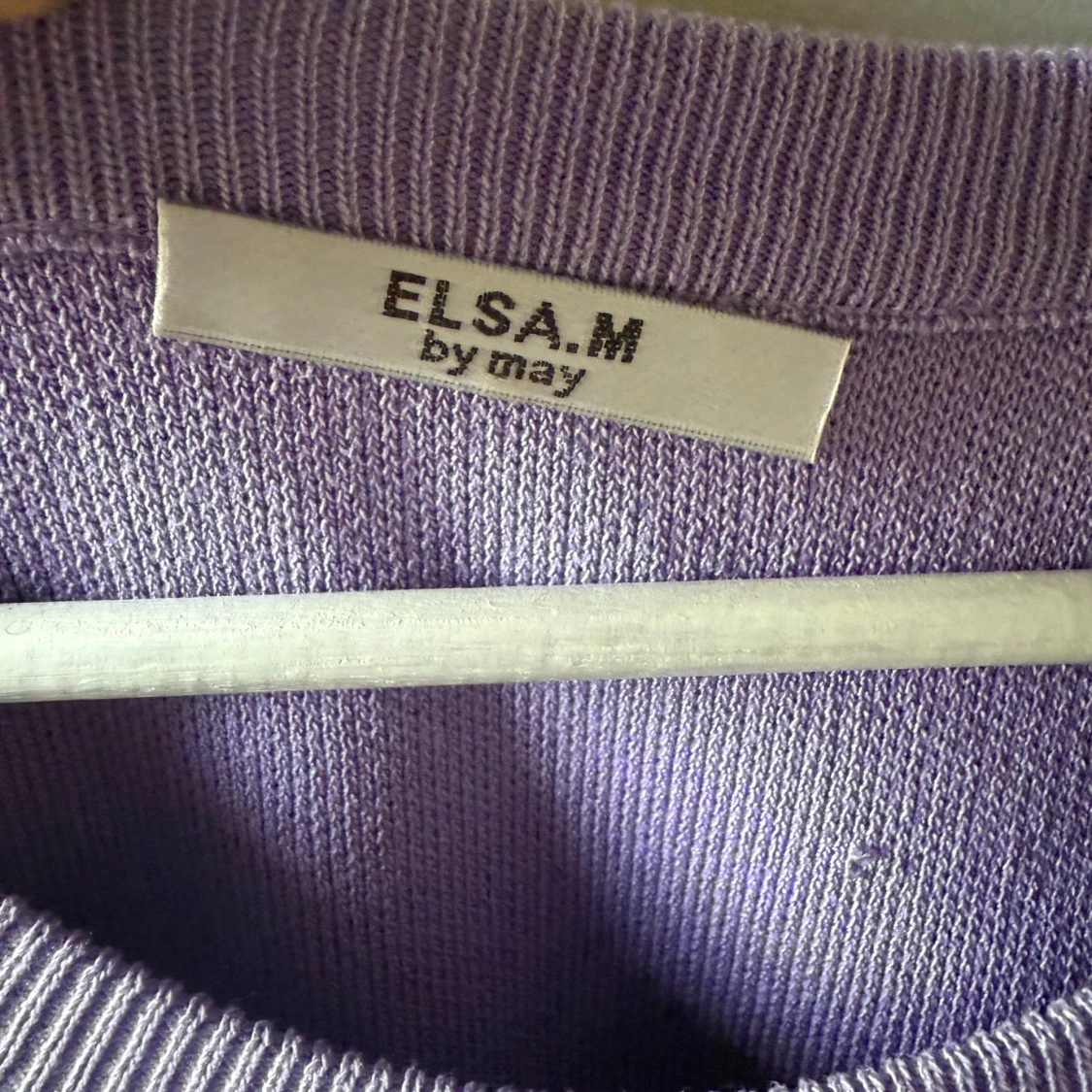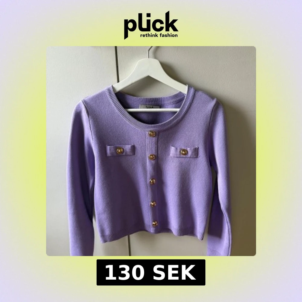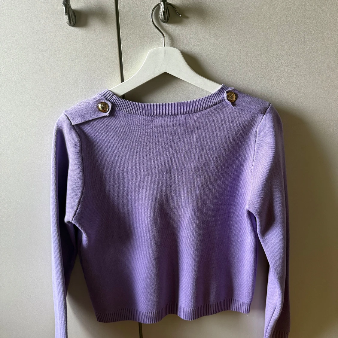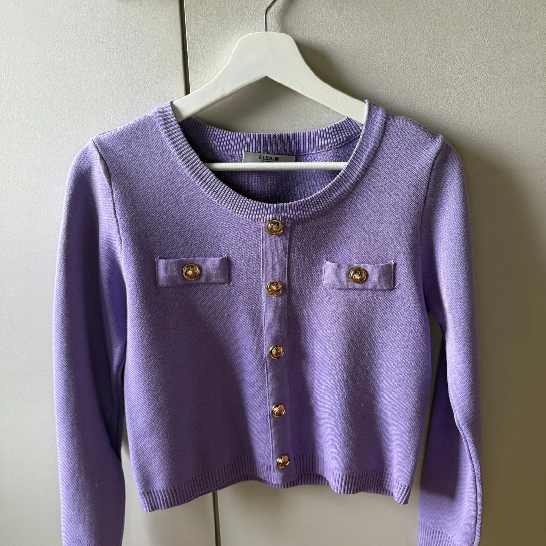 Superfin lila kofta från ELSA.M med snygga guldknappar framtill och på axlarna. Koftan har rund halsringning, långa ärmar och två dekorativa fickor på bröstet. Perfekt att slänga över en topp för en trendig look.