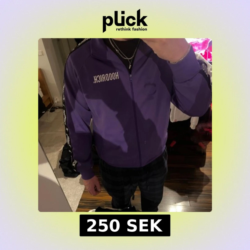 Säljer en lila track jacket från Hoodrich med dragkedja framtill och svarta band med vit logga längs ärmarna. Jackan har hög krage och lång ärm, perfekt för en sportig och trendig look. Passar M/L!