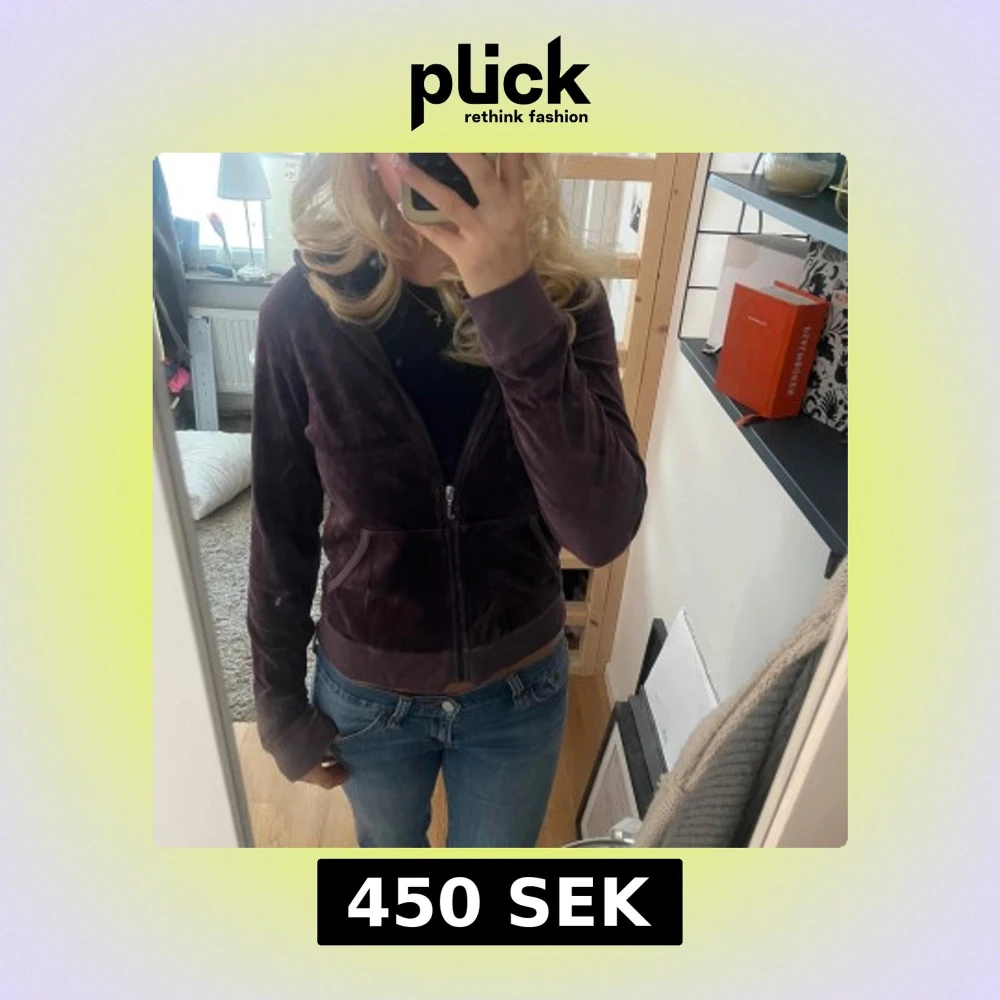 Mörklila velour hoodie från Juicy Couture med glittrig krona och texten 'Her Majesty Juicy Couture' på ryggen. Jackan har dragkedja, huva och fickor framtill. Köpt i London, står storlek L men tycker att den passar mer som en S/M! Kolla de två sista bilderna för bättre ljus och defekter på koftan❗️