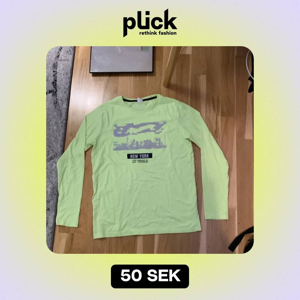 Säljer en cool limegrön långärmad tröja från Lindex med ett tryck av New York-silhuetten och texten 'New York My World'. Perfekt för vardagsbruk och att sticka ut med sin unika färg. Passar ungdomar i åldern 12-14 år.