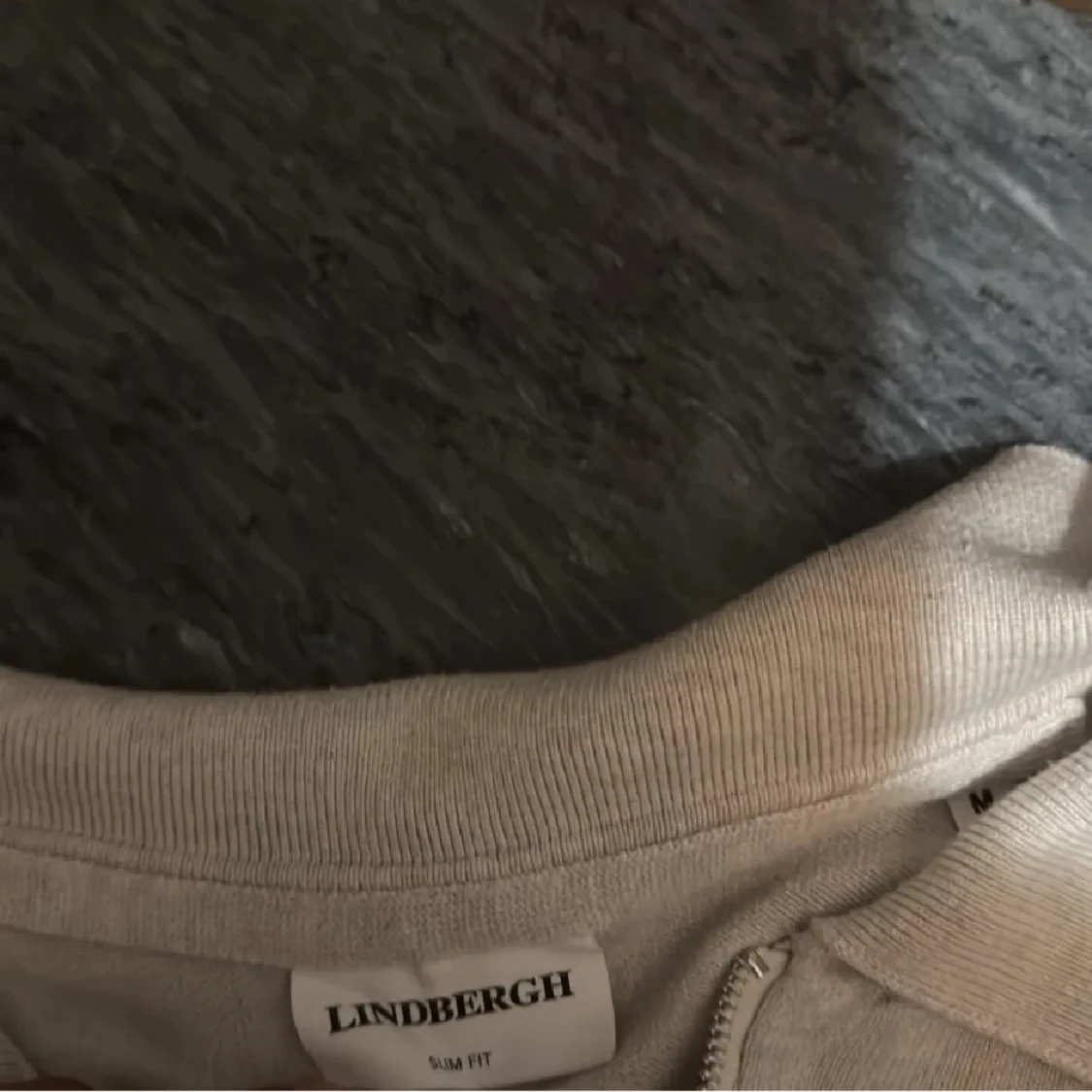 Snygg beige långärmad tröja från Lindbergh med slim fit passform. Tröjan har en klassisk krage och half zip-dragkedja framtill samt diskret broderad logga på bröstet. Perfekt för dig som gillar stilrena och enkla plagg.