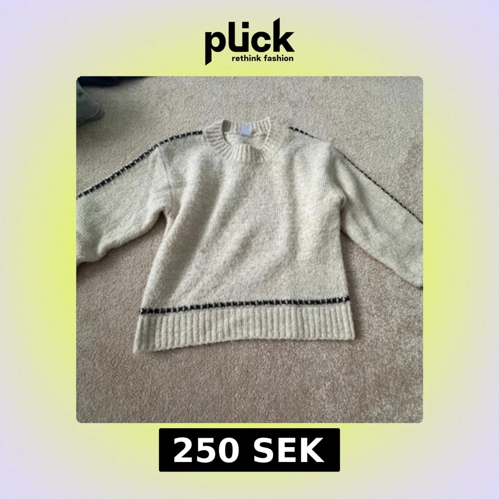 Mysig beige stickad tröja från Lindex med svarta detaljer längs ärmar och nederkant. Tröjan har ribbad halsringning och muddar, samt långärmad passform. Tröjan är i 128 men passade på mig som 140-146. Perfekt för kyliga dagar och enkel att matcha med jeans eller kjol.