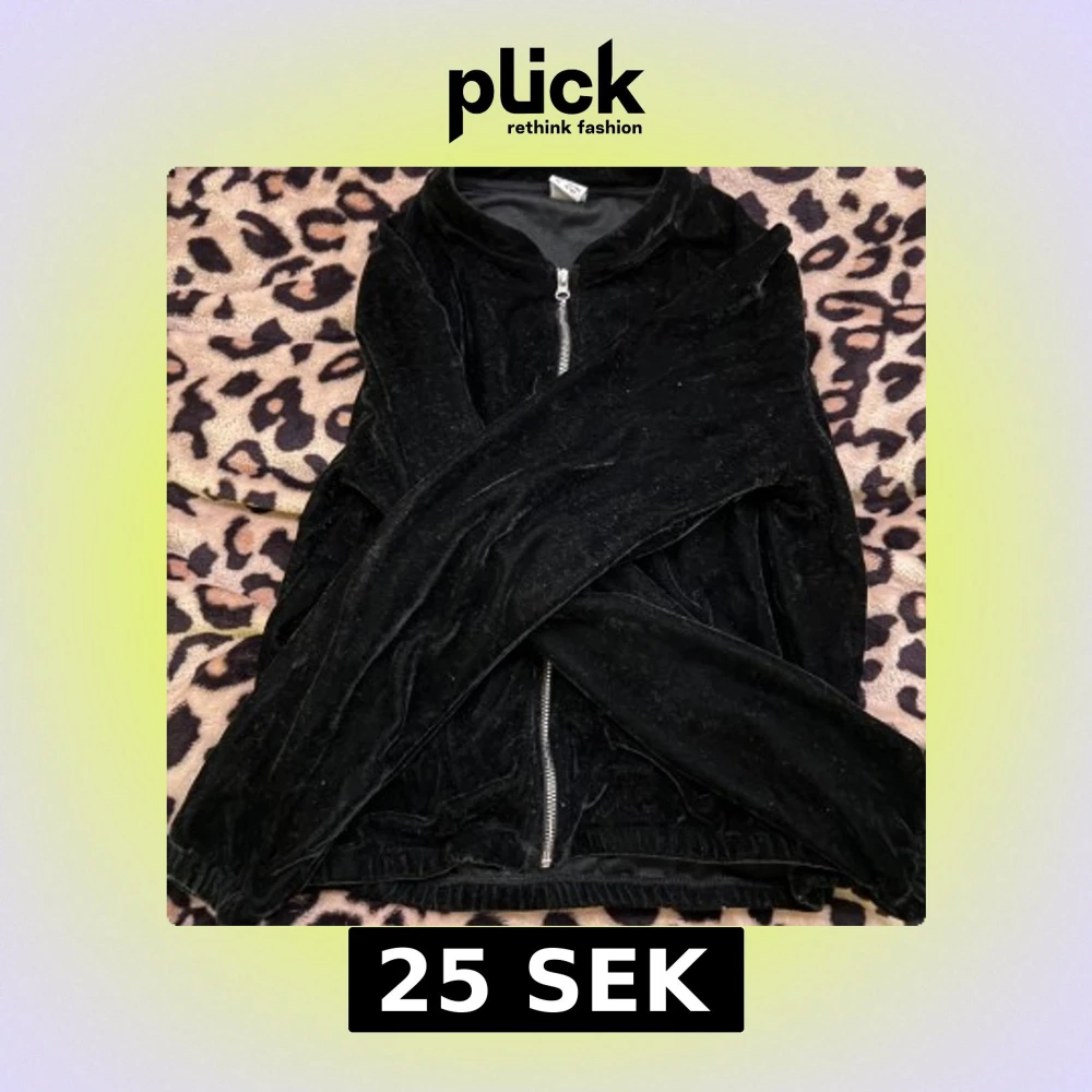 Säljer en svart sammet kofta med dragkedja framtill. Koftan har långa ärmar och en mjuk, glansig yta som ger en lyxig känsla. Perfekt för att lägga till en touch av glamour till din outfit. Är storlek 146/152 passar även mig som kan ha xs i vissa kläder