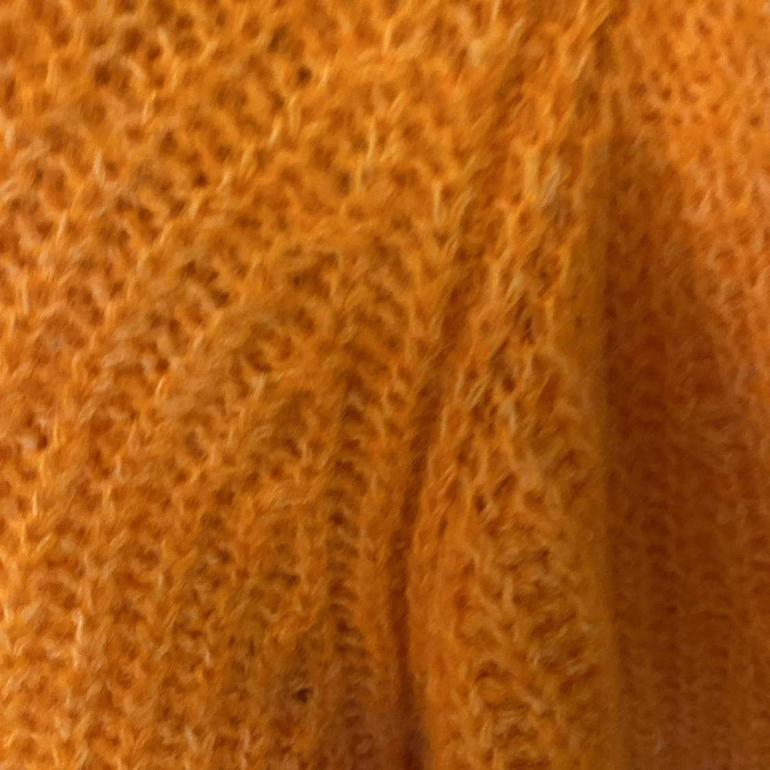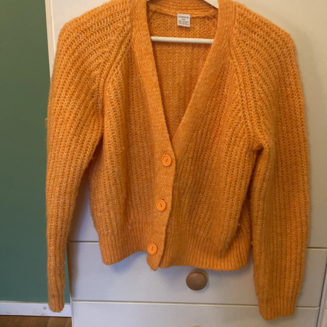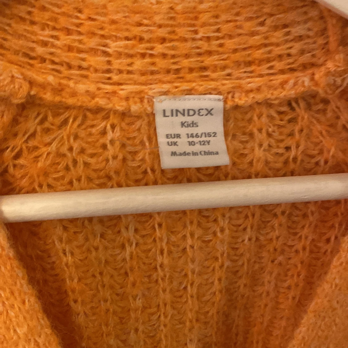 Säljer en mysig orange stickad kofta från Lindex. Storlek 146/152 men passar mig som har 158/xxs