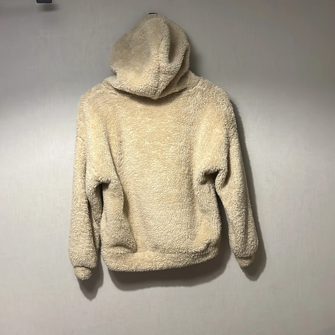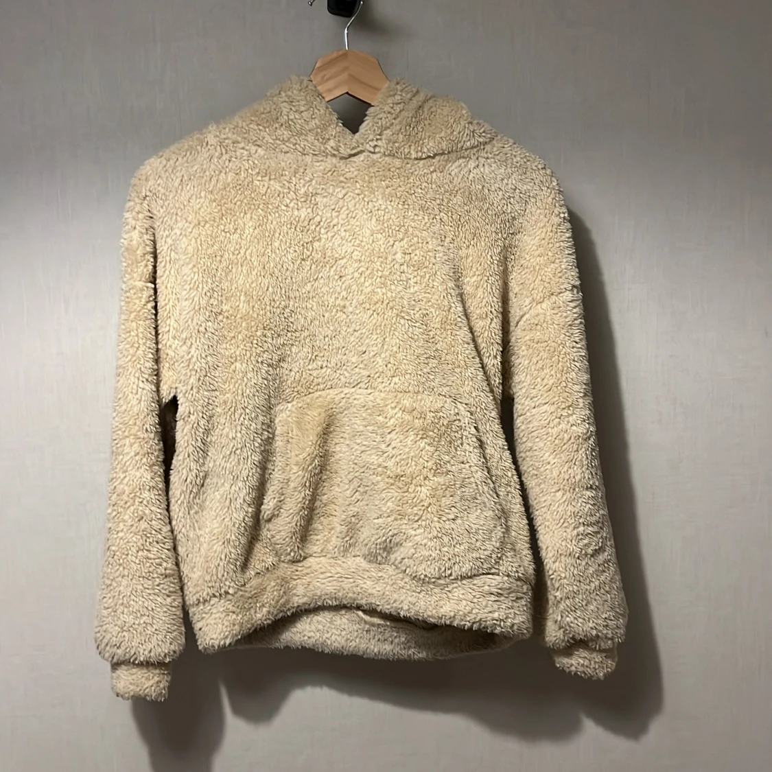 Supermjuk och fluffig beige hoodie från Lindex med stor huva och magficka. Perfekt för att mysa i när det är kallt ute. Tröjan har långa ärmar och är tillverkad i gosig fleece som känns skön mot huden. Passar dig som gillar chill och comfy vibes.